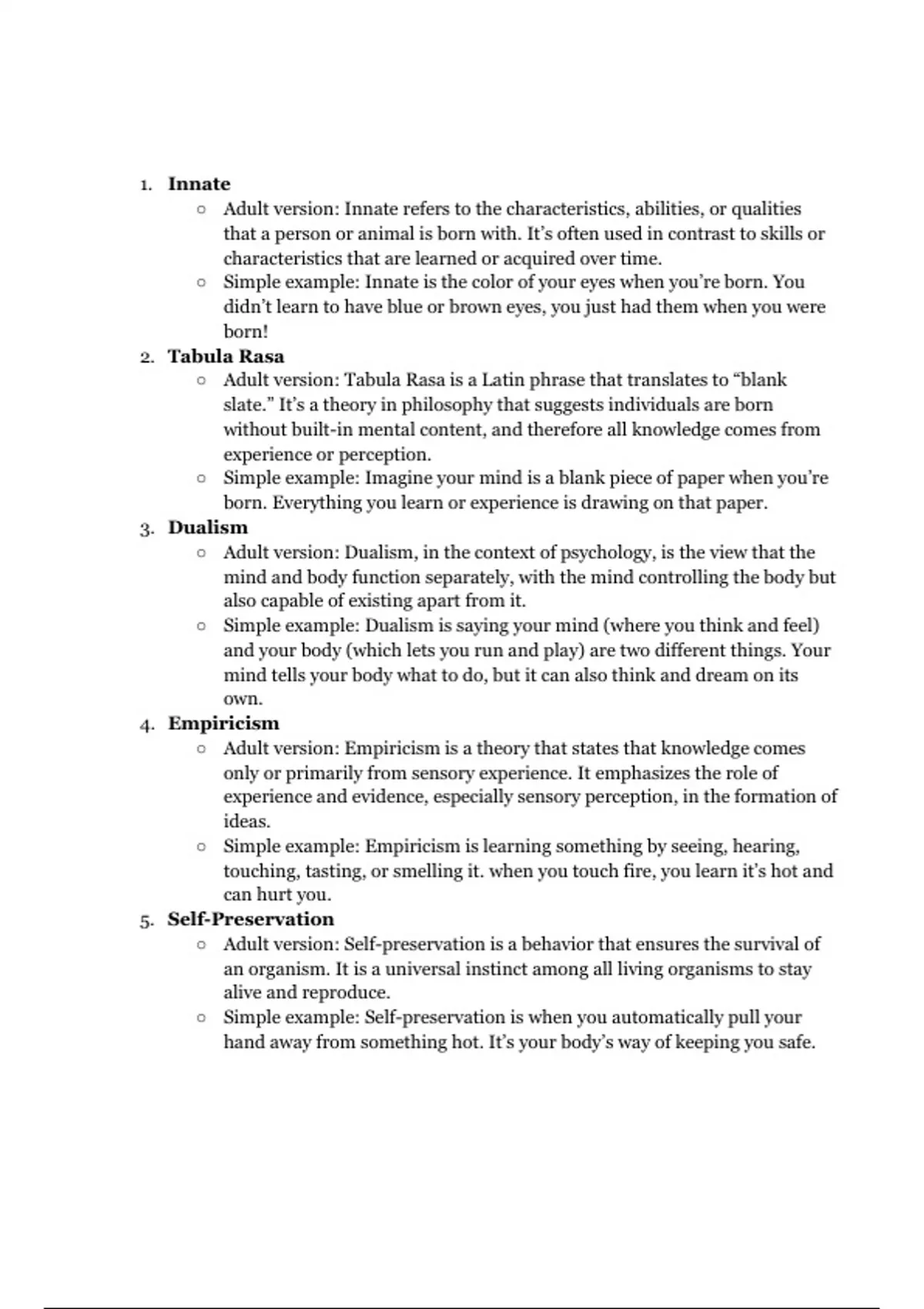 ○ Adult version: Dualism, in the context of psychology, is the view that the
