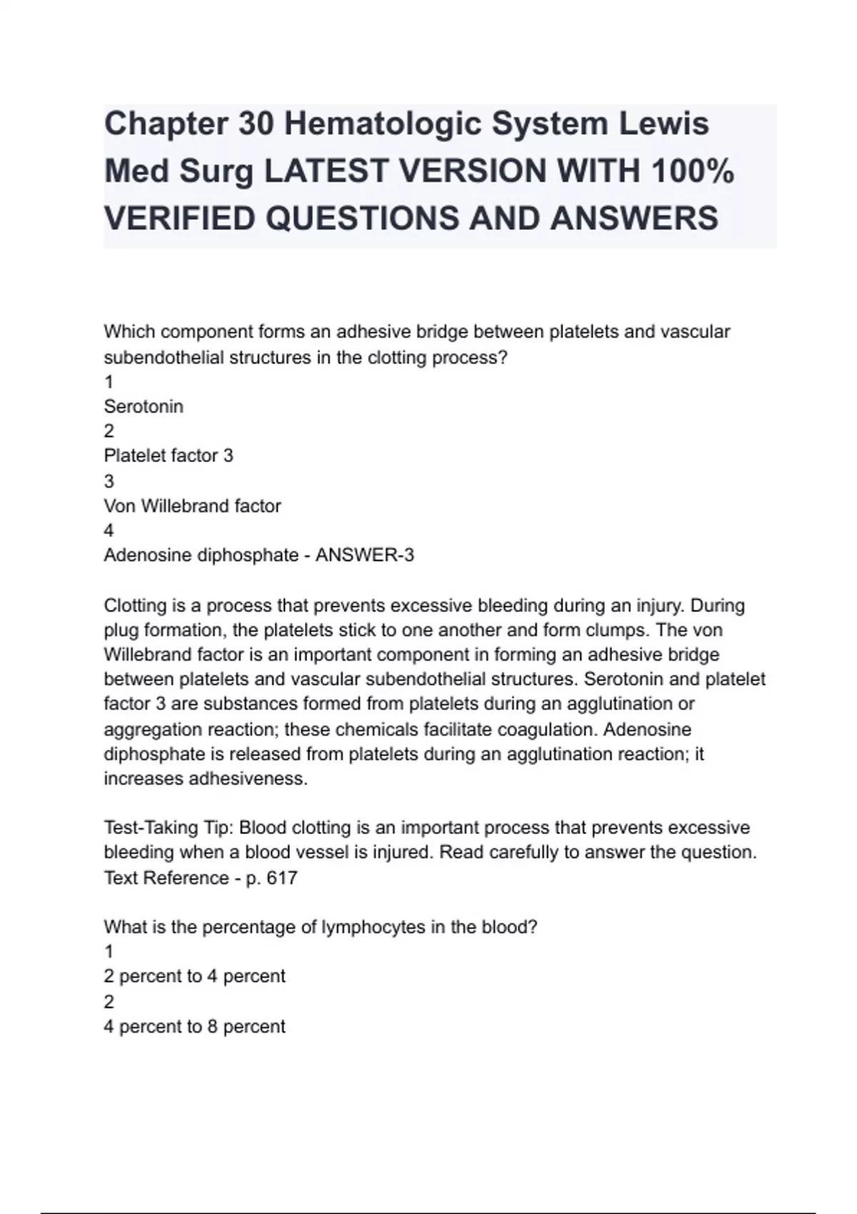Chapter 30 Hematologic System Lewis Med Surg LATEST VERSION WITH 100% VERIFIED
