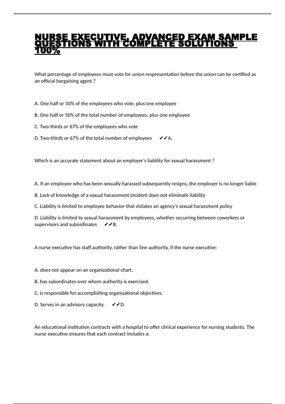 NURSE EXECUTIVE, ADVANCED EXAM SAMPLE QUESTIONS WITH COMPLETE SOLUTIONS 100%