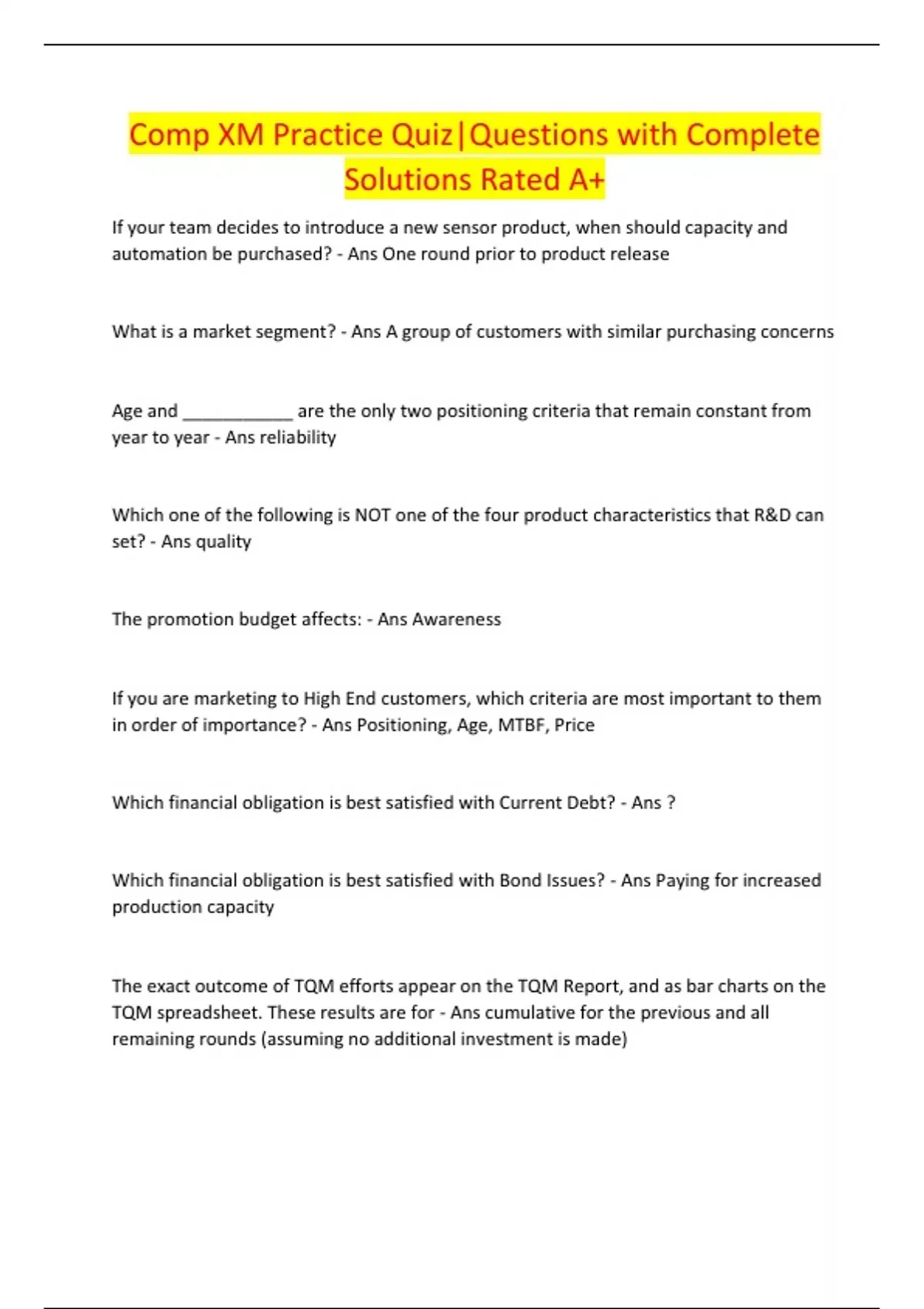Comp XM Practice Quiz|Questions with Complete Solutions Rated A+