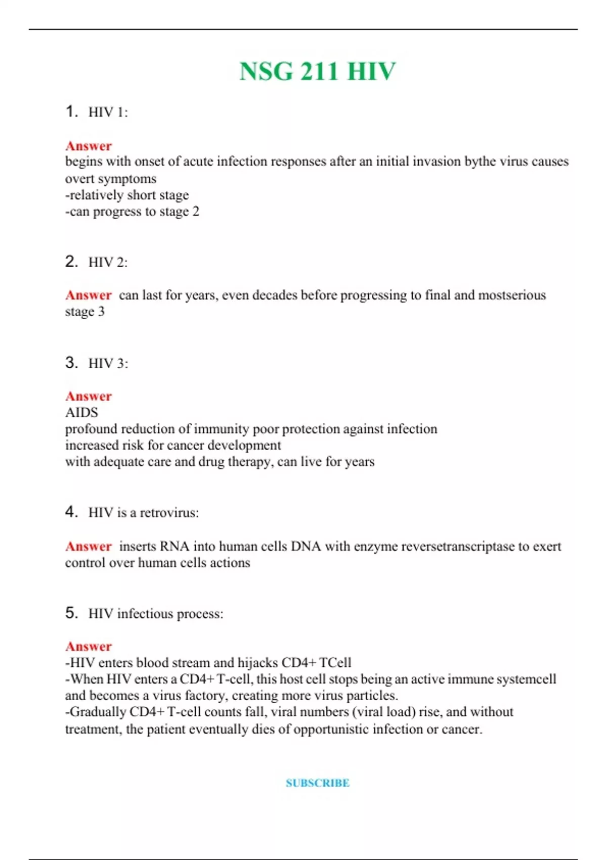 NSG 211 HIV (Latest 2024 / 2025) Questions & Answers with rationales