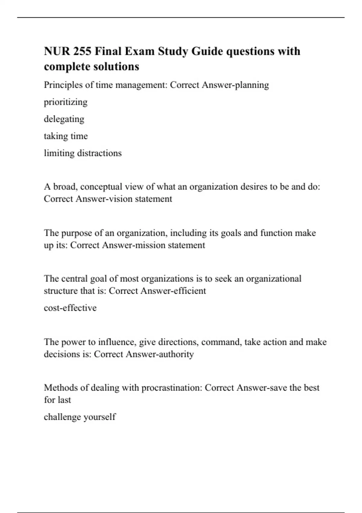 NUR 255 Final Exam Study Guide questions with complete solutions.