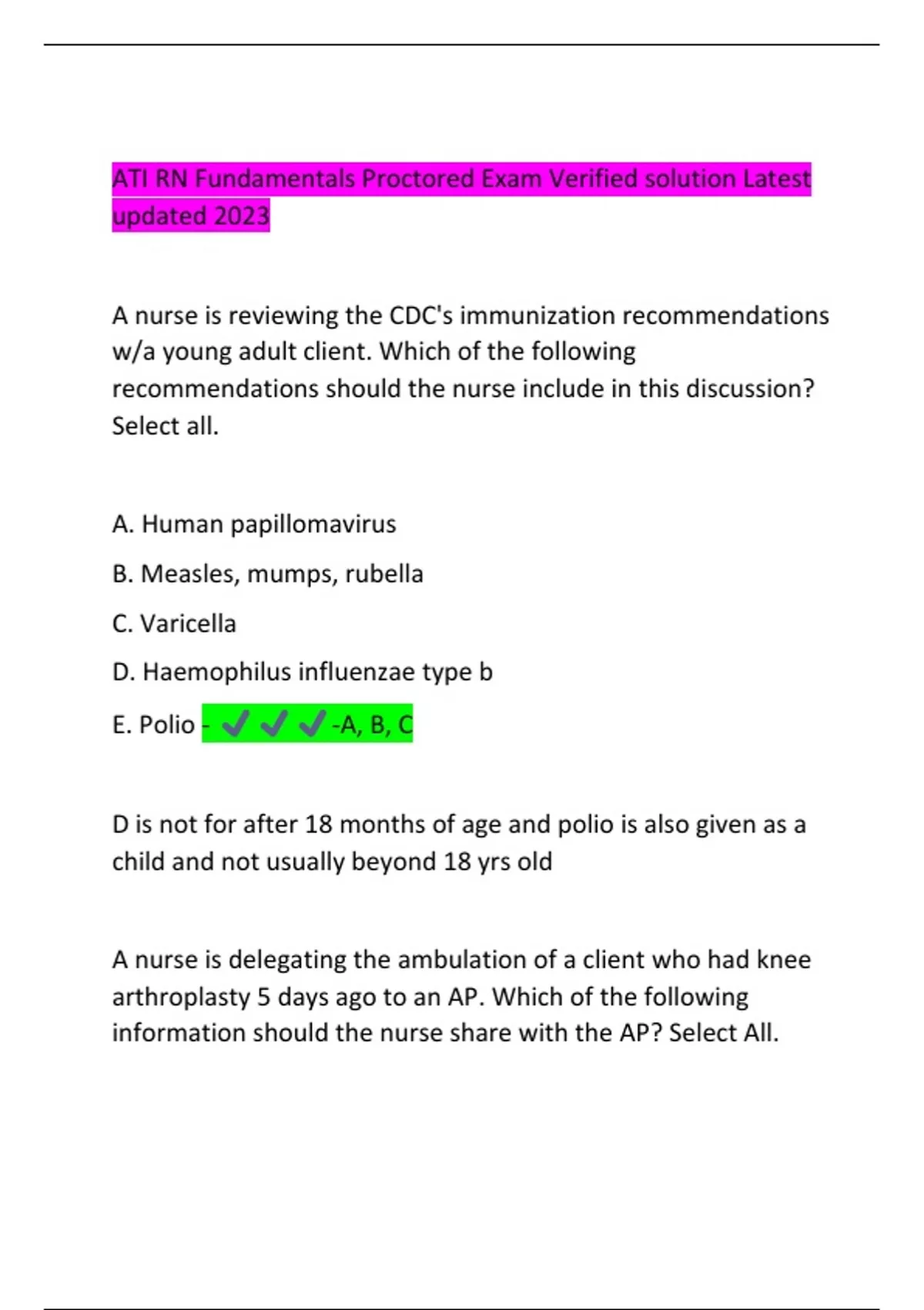 ATI RN Fundamentals Proctored Exam Verified solution Latest updated 2023