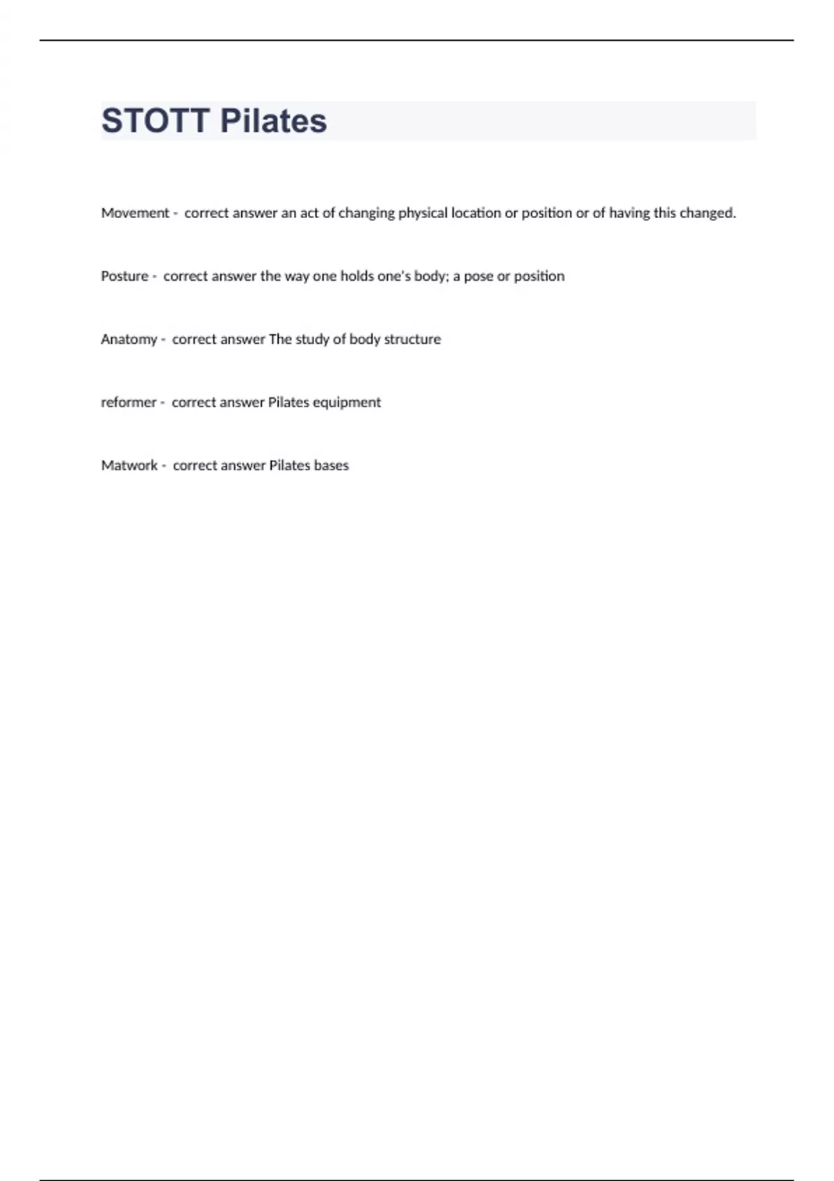 stott pilates questions and answers verified 2024