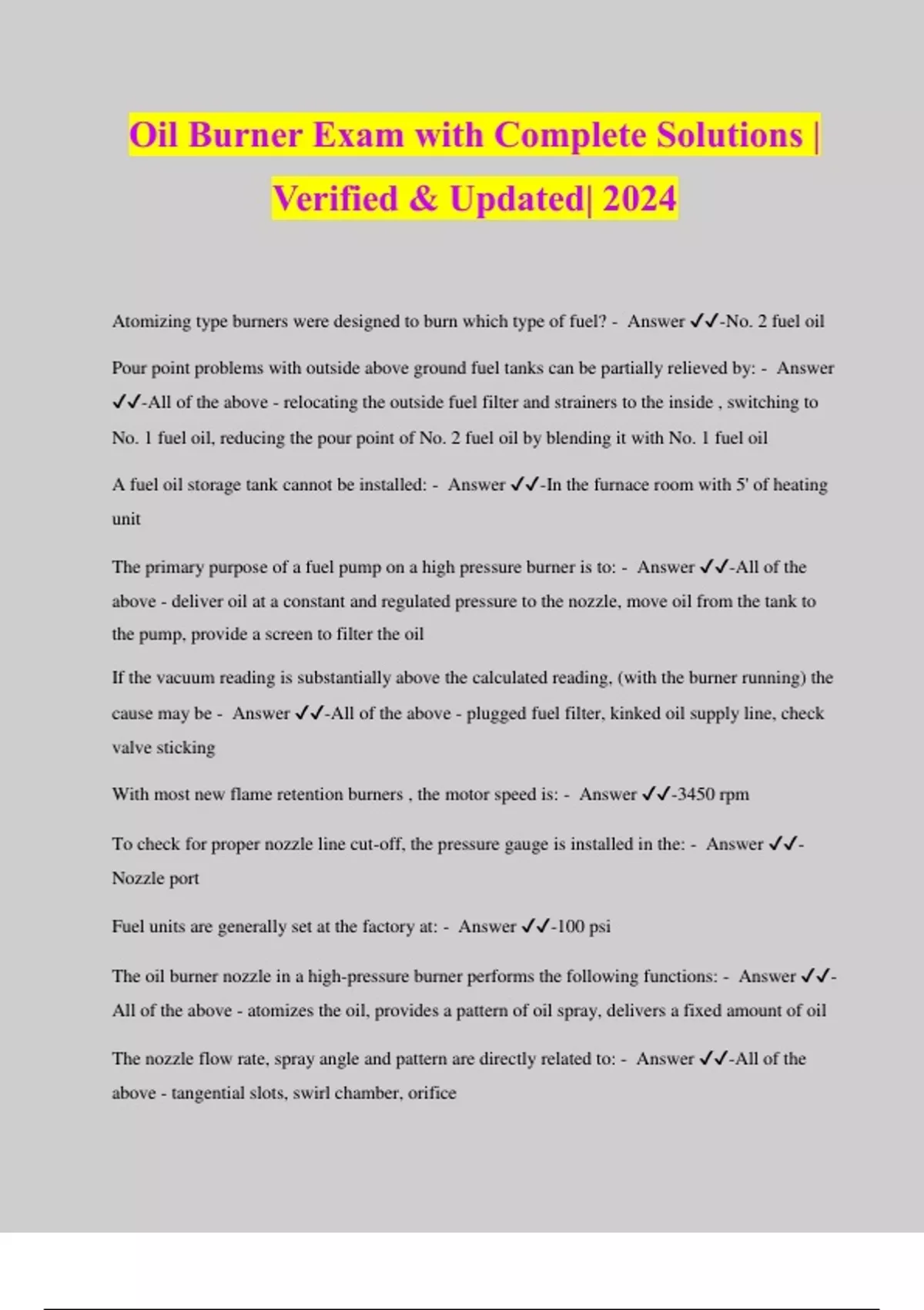Oil Burner Exam with Complete Solutions | Verified & Updated| 2024