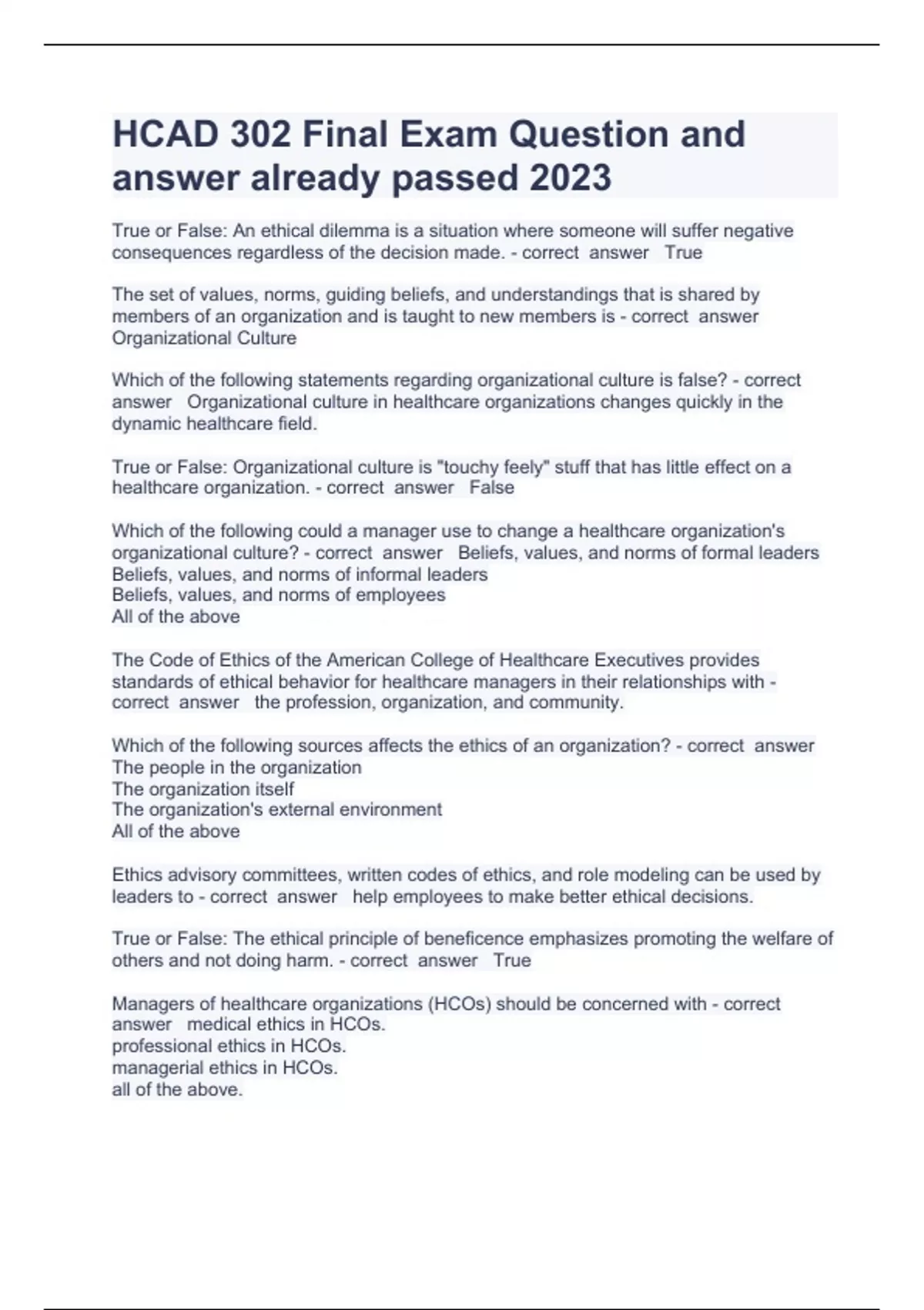 hcad 302 final exam question and answer already pa