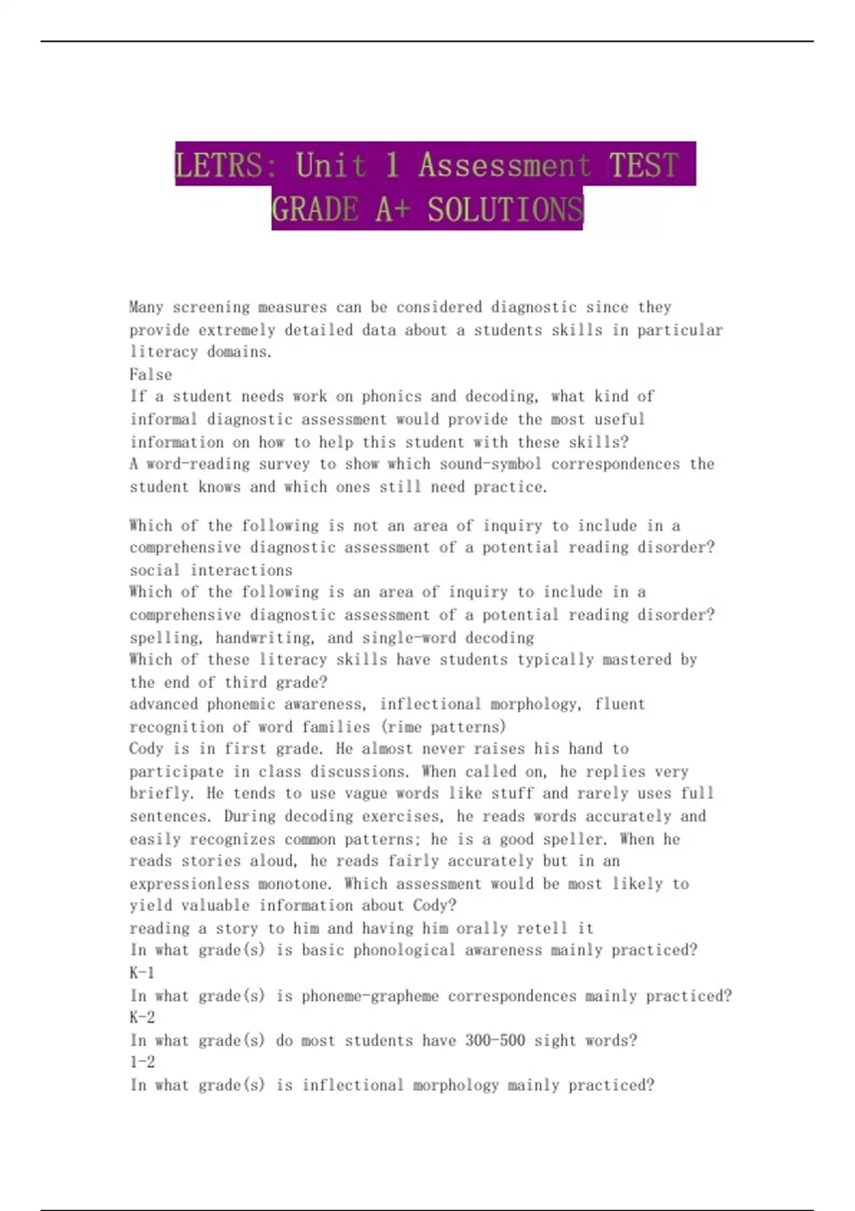 sentences. During decoding exercises, he reads words accurately and