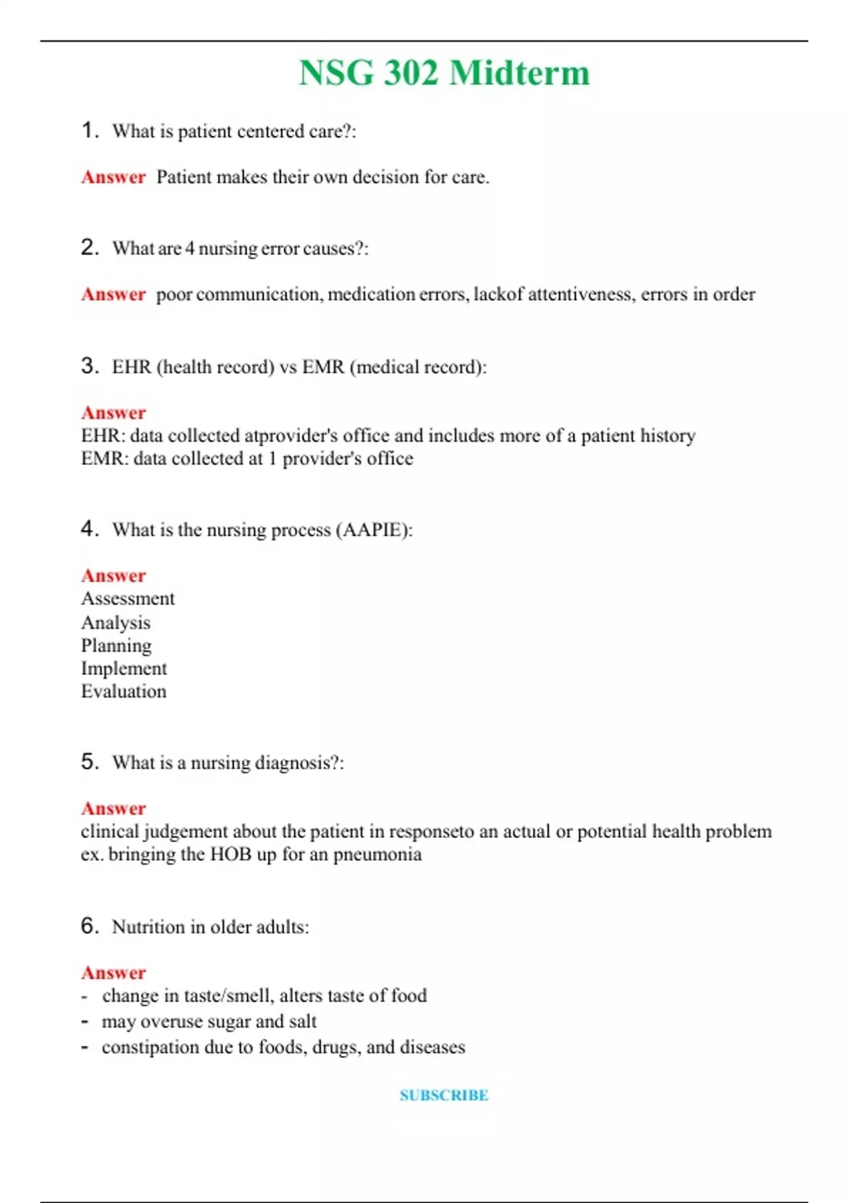 NSG 302 Midterm (Latest 2024 / 2025) Questions & Answers with rationales