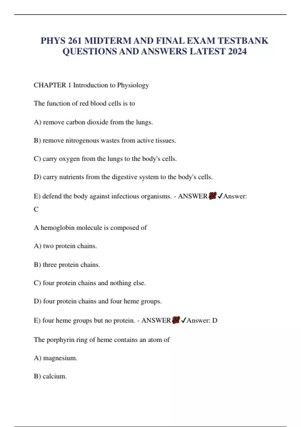 PHYS 261 MIDTERM AND FINAL EXAM TESTBANK QUESTIONS AND ANSWERS LATEST 2024.