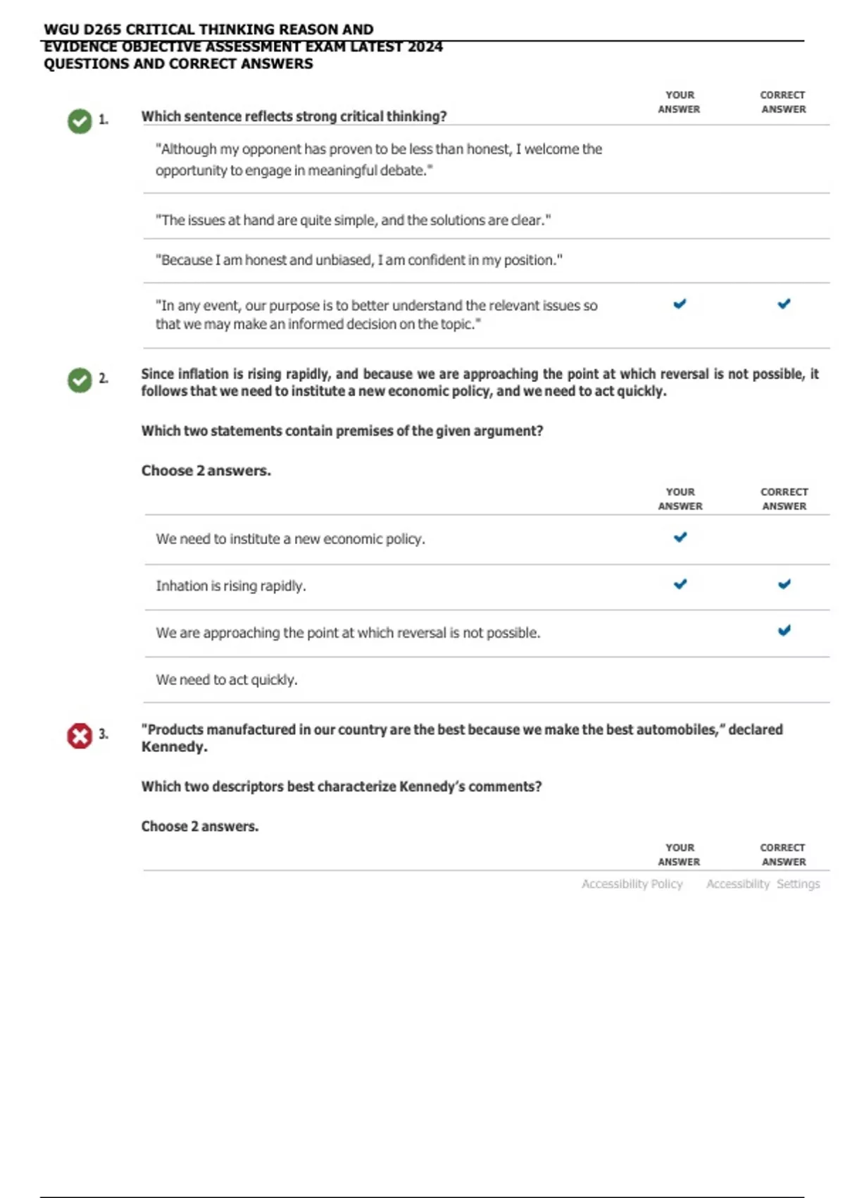 WGU D265 CRITICAL THINKING REASON AND EVIDENCE OBJECTIVE ASSESSMENT EXAM LATEST 2024 QUESTIONS AND CORRECT ANSWERS