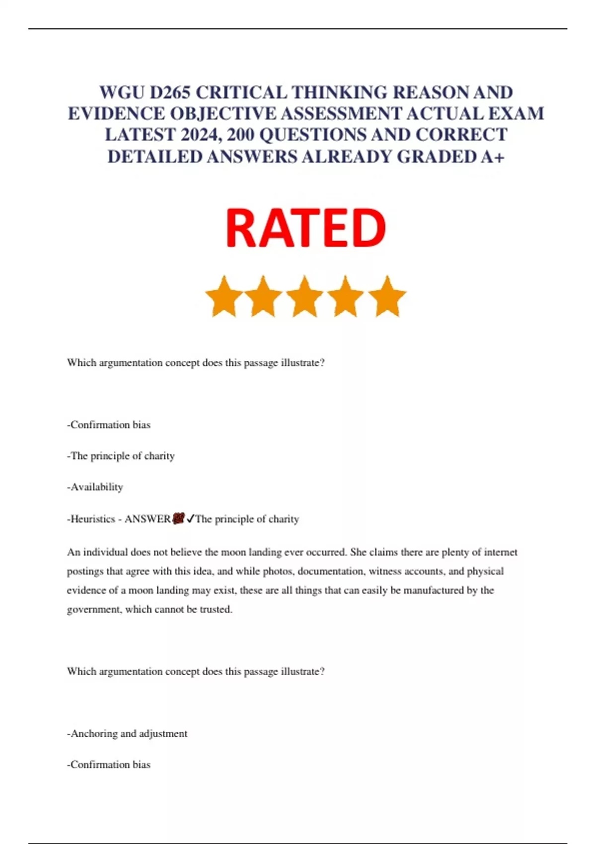 WGU D265 CRITICAL THINKING REASON AND EVIDENCE OBJECTIVE ASSESSMENT ACTUAL EXAM LATEST 2024, 200 QUESTIONS AND CORRECT DETAILED ANSWERS ALREADY GRADED A+