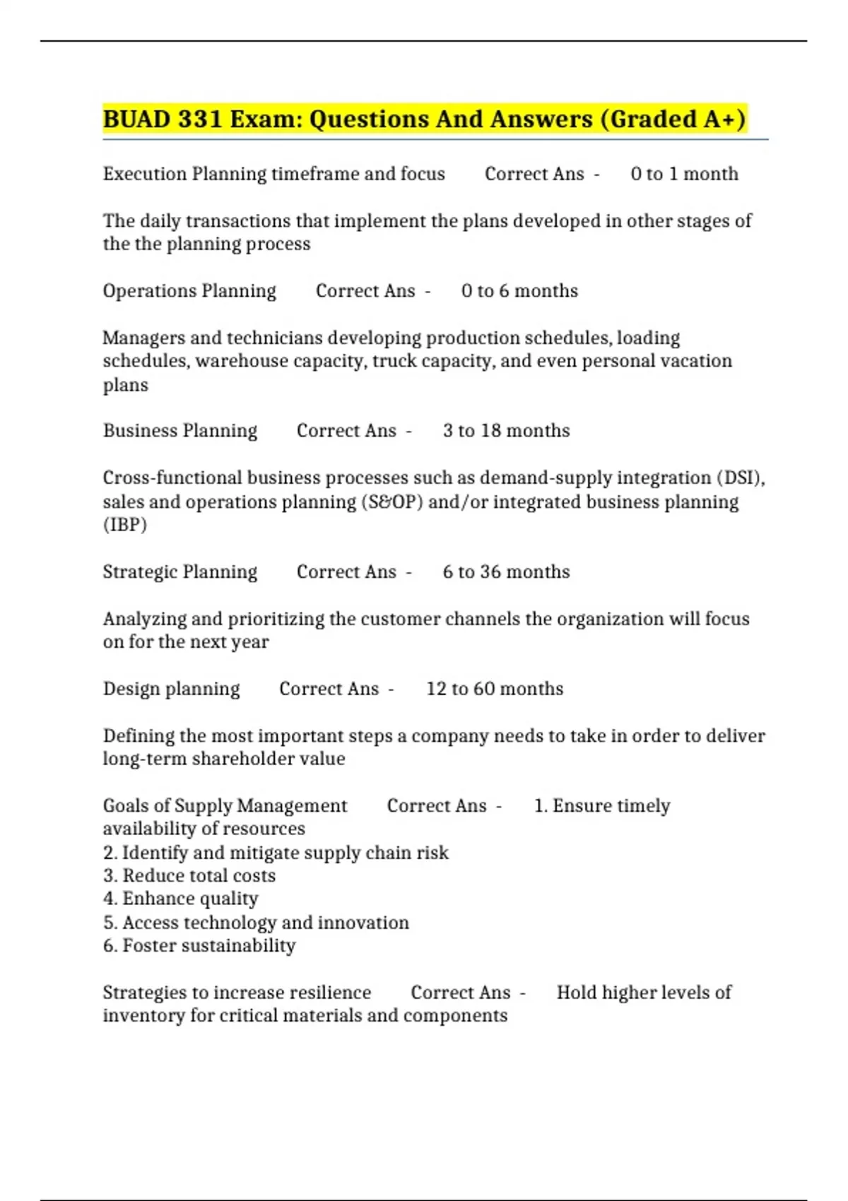 BUAD 331 Exam: Questions And Answers (Graded A+)