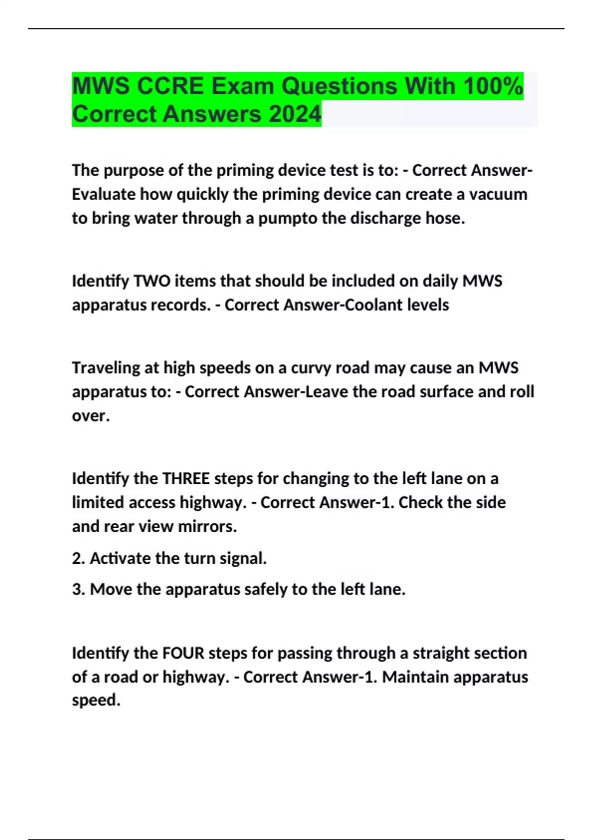 MWS CCRE Exam Questions With 100% Correct Answers 2024