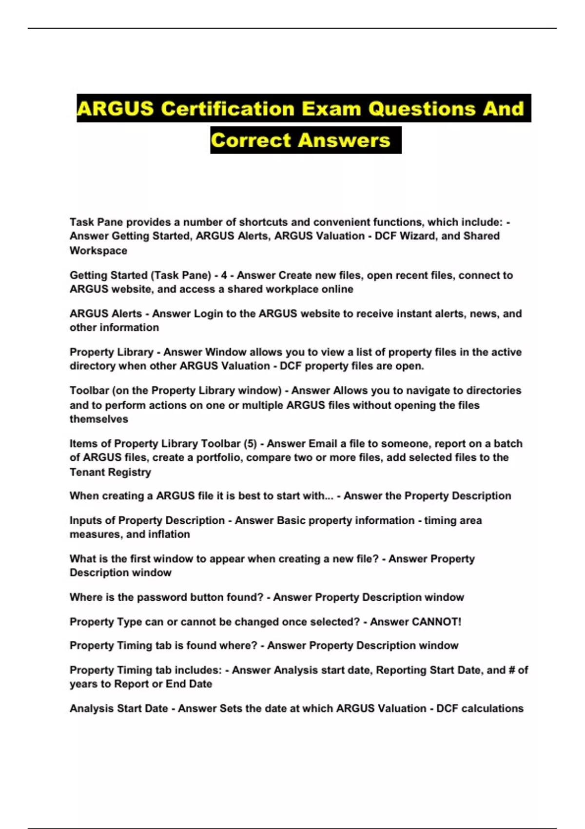 ARGUS Certification Exam Questions And Correct Answers...