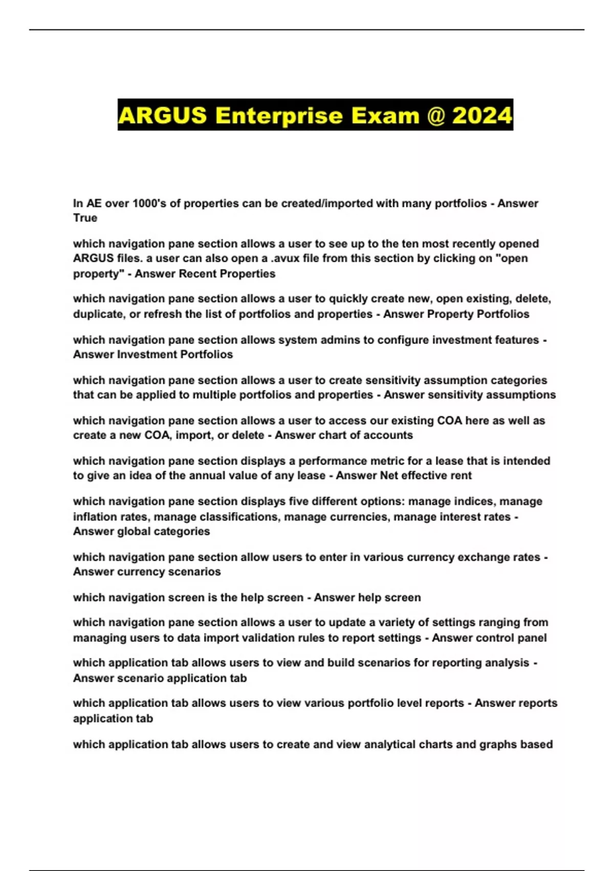 ARGUS Packaged Exams With Verified Solutions Graded A