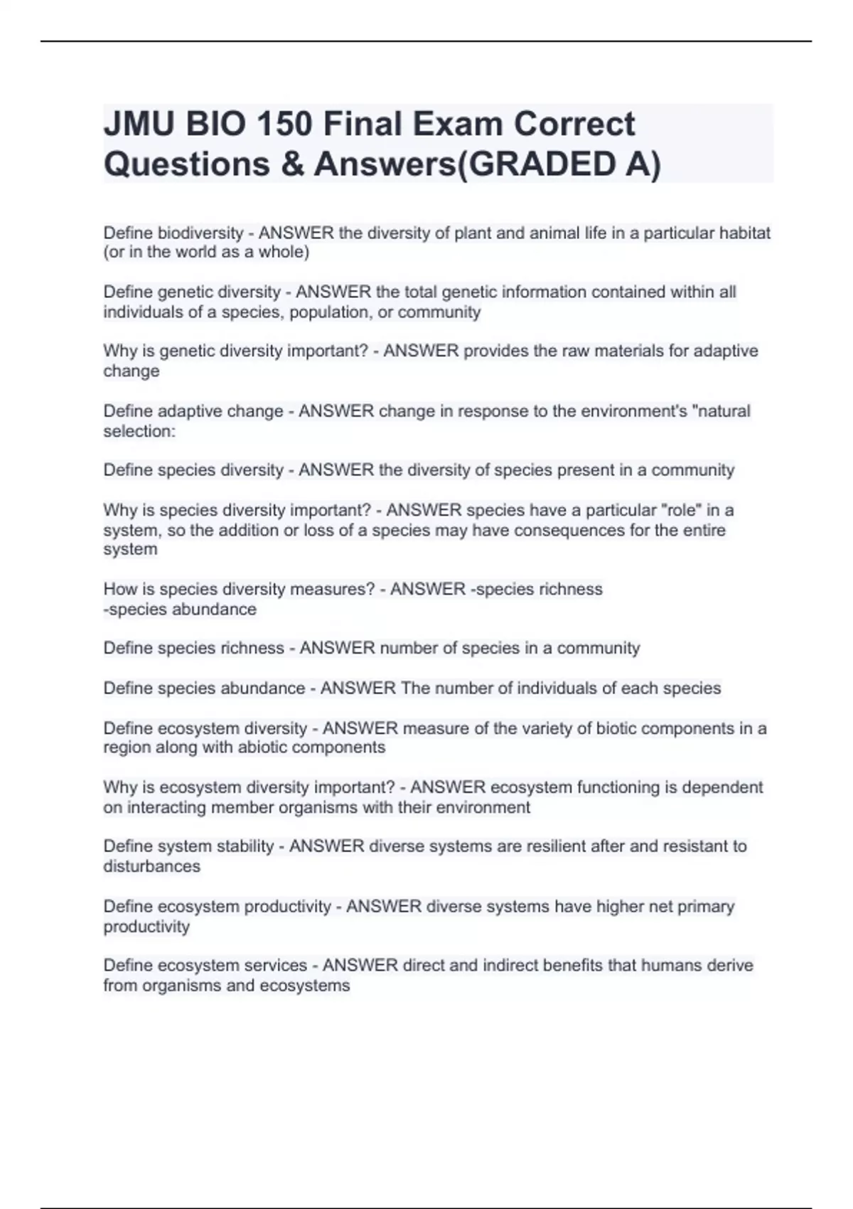 Define biodiversity - ANSWER the diversity of plant and animal life in a particular habitat