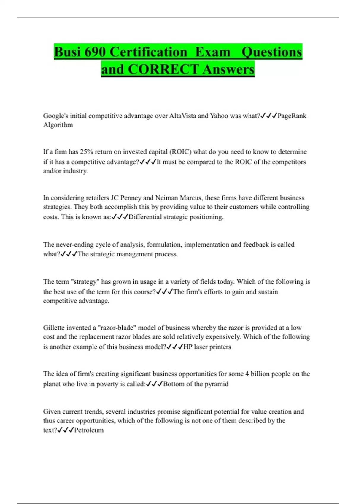Busi 690 Certification Exam Questions and CORRECT Answers