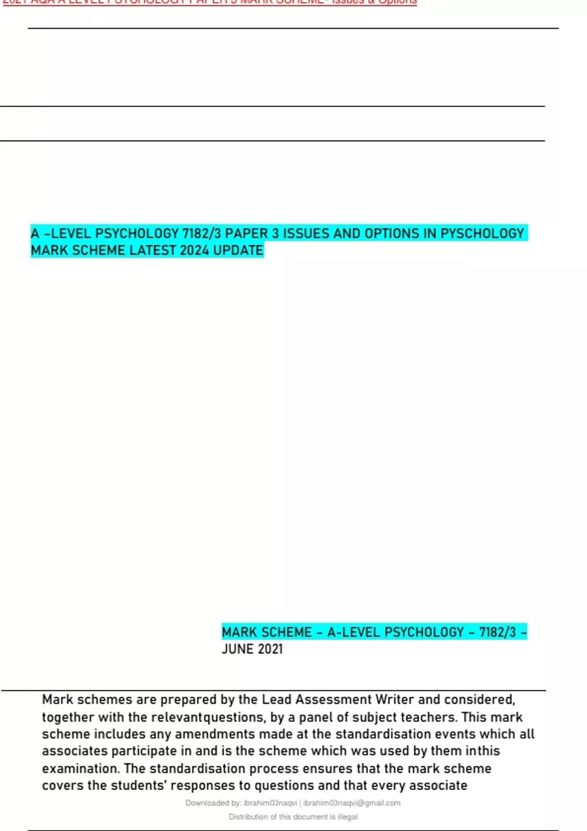 ,2021 AQA A LEVEL PSYCHOLOGY PAPER 3 MARK SCHEME- Issues & Options