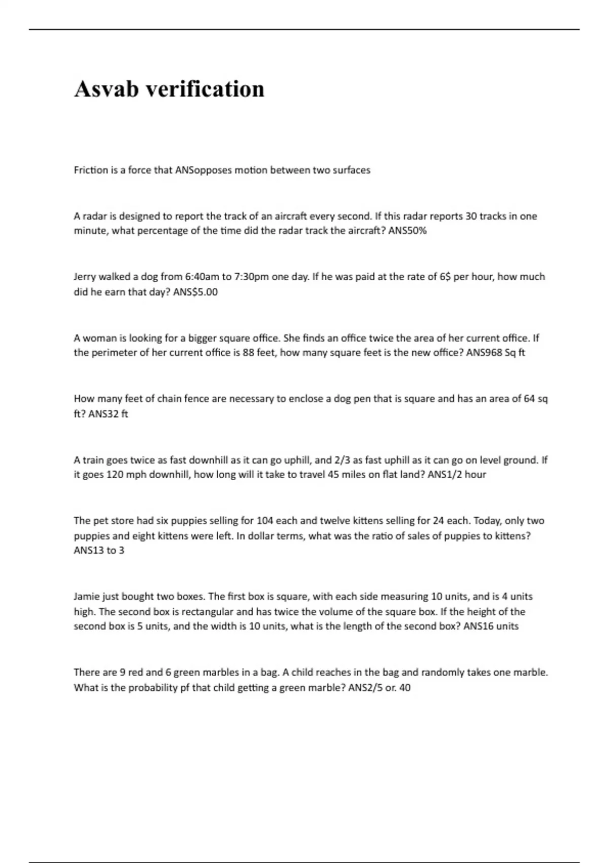 Asvab verification Complete Questions and Answers 2024 Latest Edition