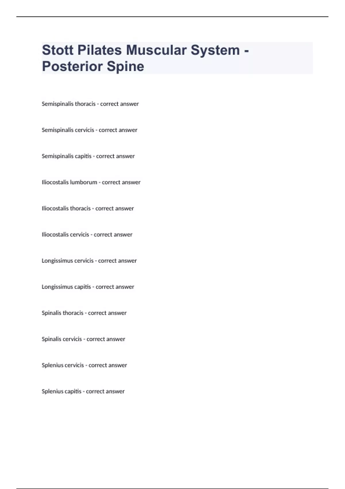 Stott Pilates Muscular System - Posterior Spine question with completed solutions 2024