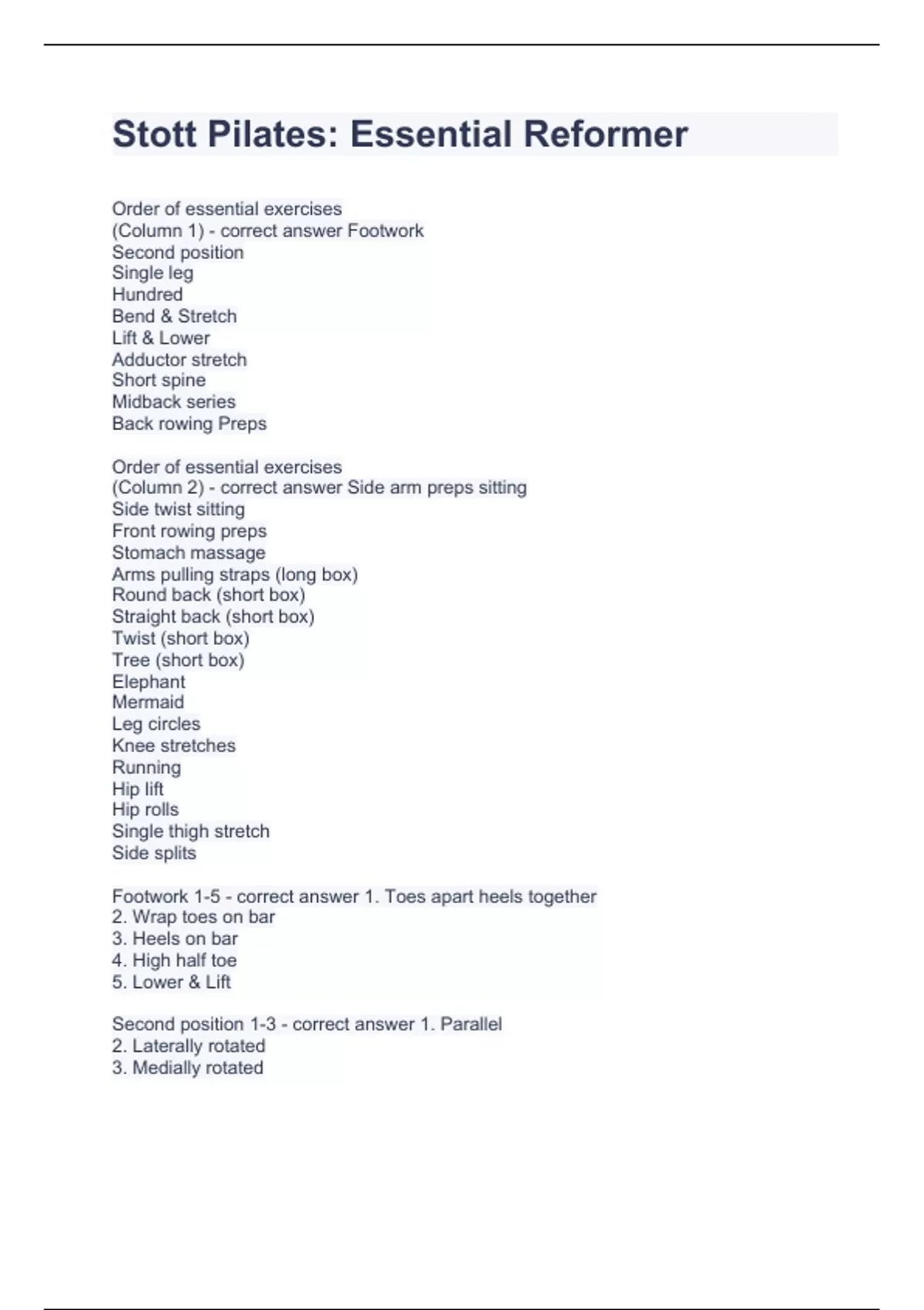 Stott Pilates Essential Reformer questions with complete solutions 2024