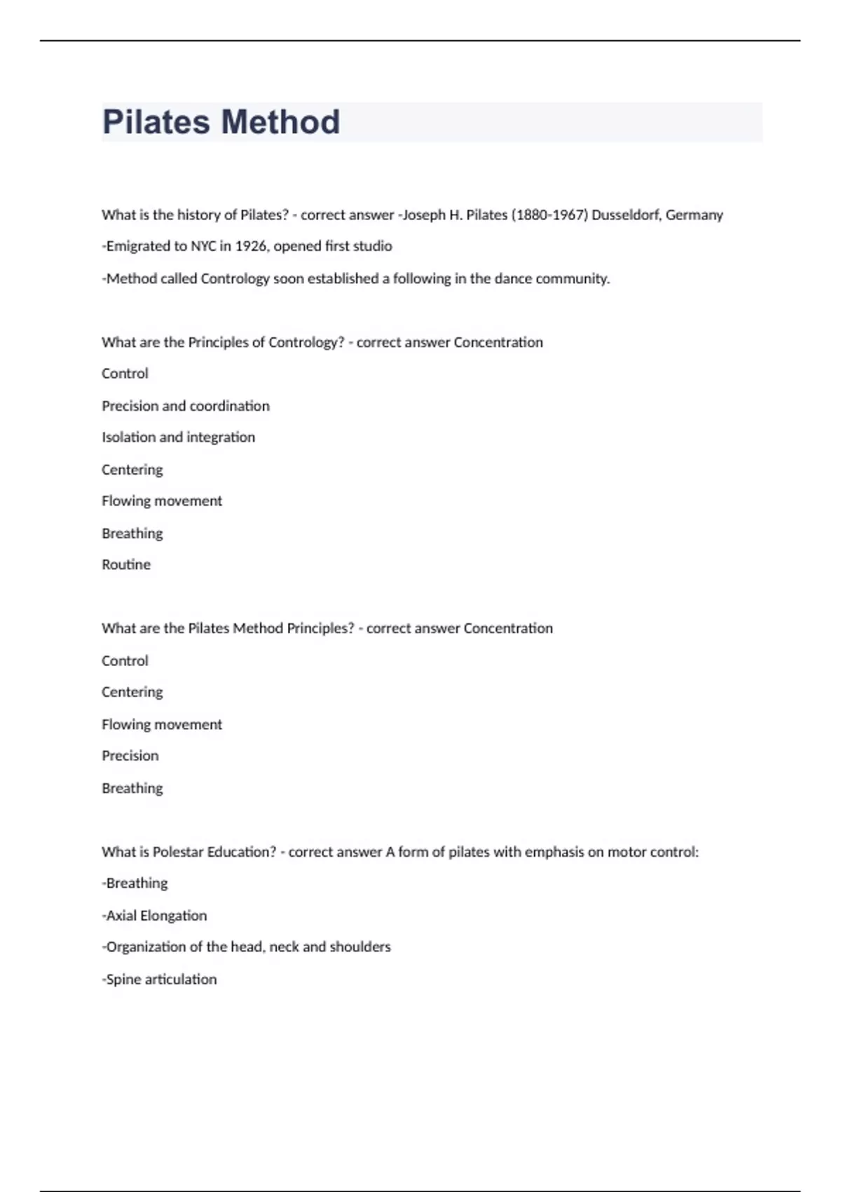 pilates method questions and answers rated a 2024