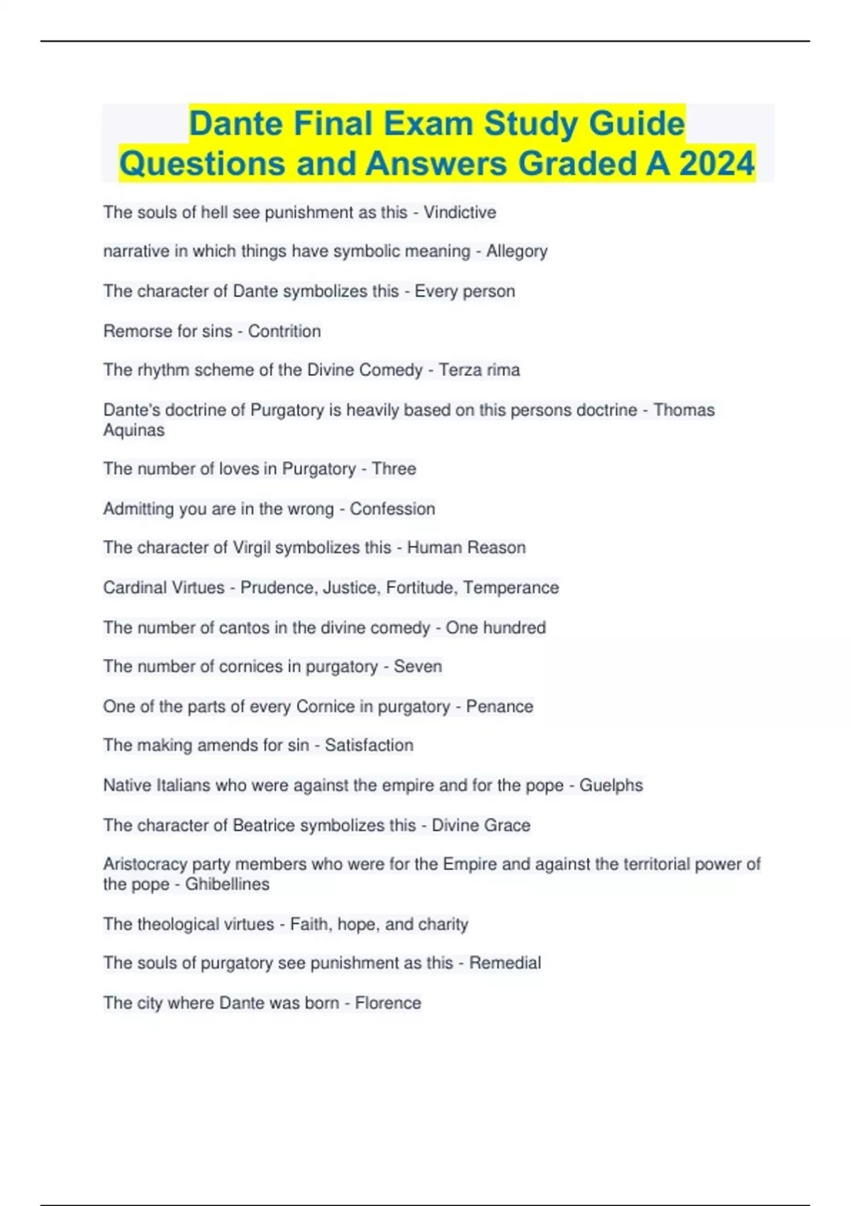 Dante Final Exam Study Guide Questions and Answers Graded A 2024