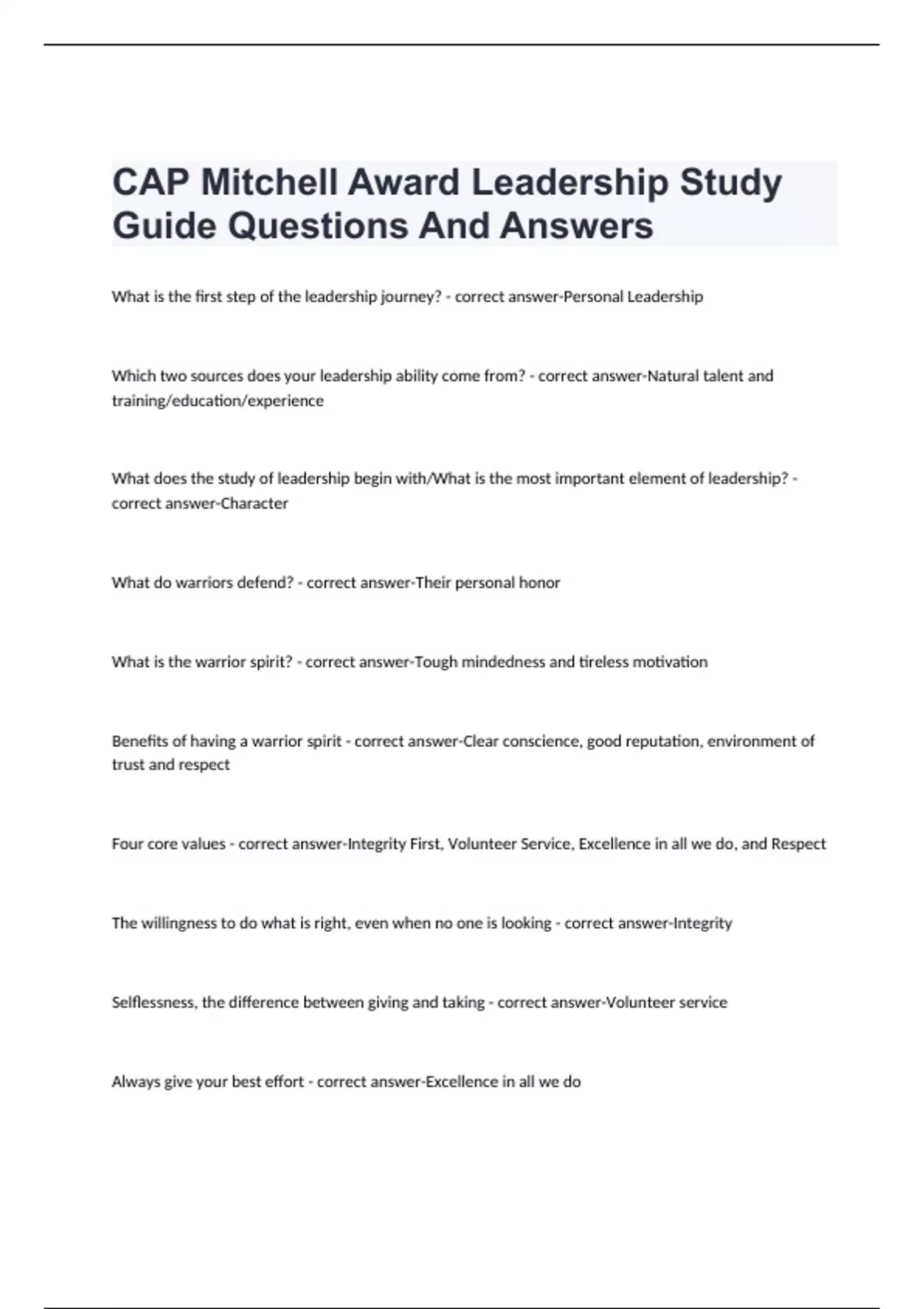 CAP Mitchell Award Leadership Study Guide Questions And Answers CAP Mitchell Award Leadership Study Guide Questions And Answers CAP Mitchell Award Leadership Study Guide Questions And Answers