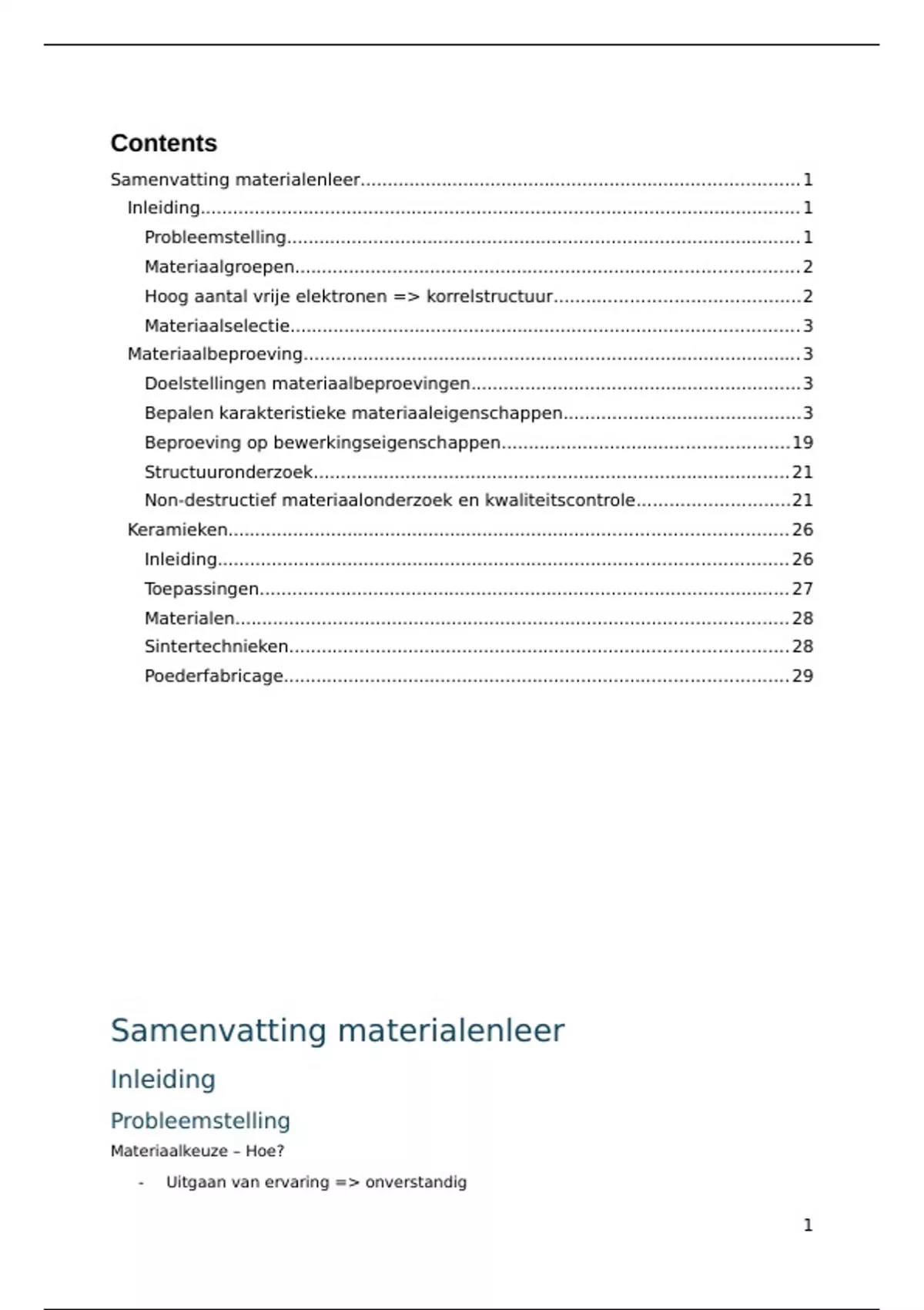 In deze samenvatting werd de informatie van de cursus en de slides van de prof samengevoegd. Het gaat over de leerstof met betrekking tot de materiaalbeproevingen en de keramieken