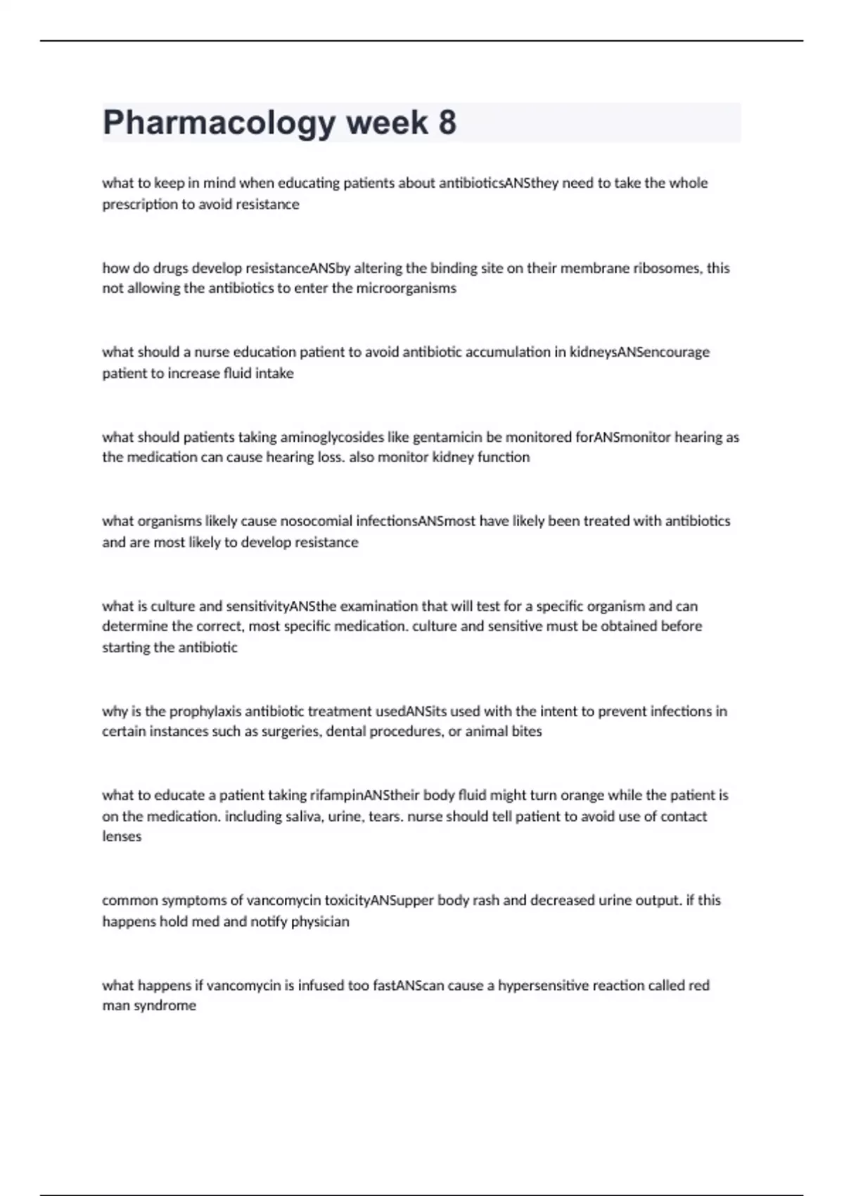 Pharmacology week 8 Exam Questions With Correct Answers (GRADED A+)