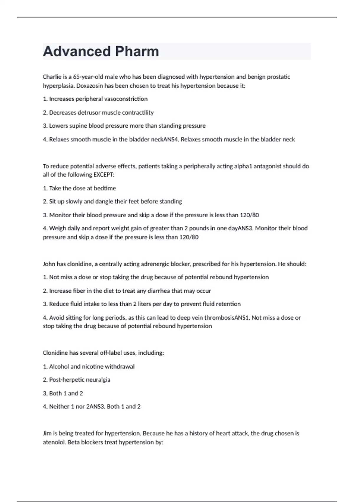 Advanced Pharm Exam Questions And Answers 2024 (RATED 100%)