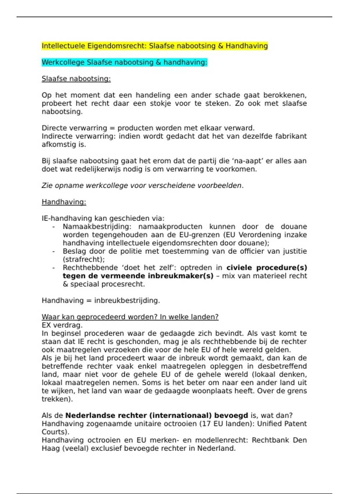 Werkcollege Slaafse nabootsing & handhaving: