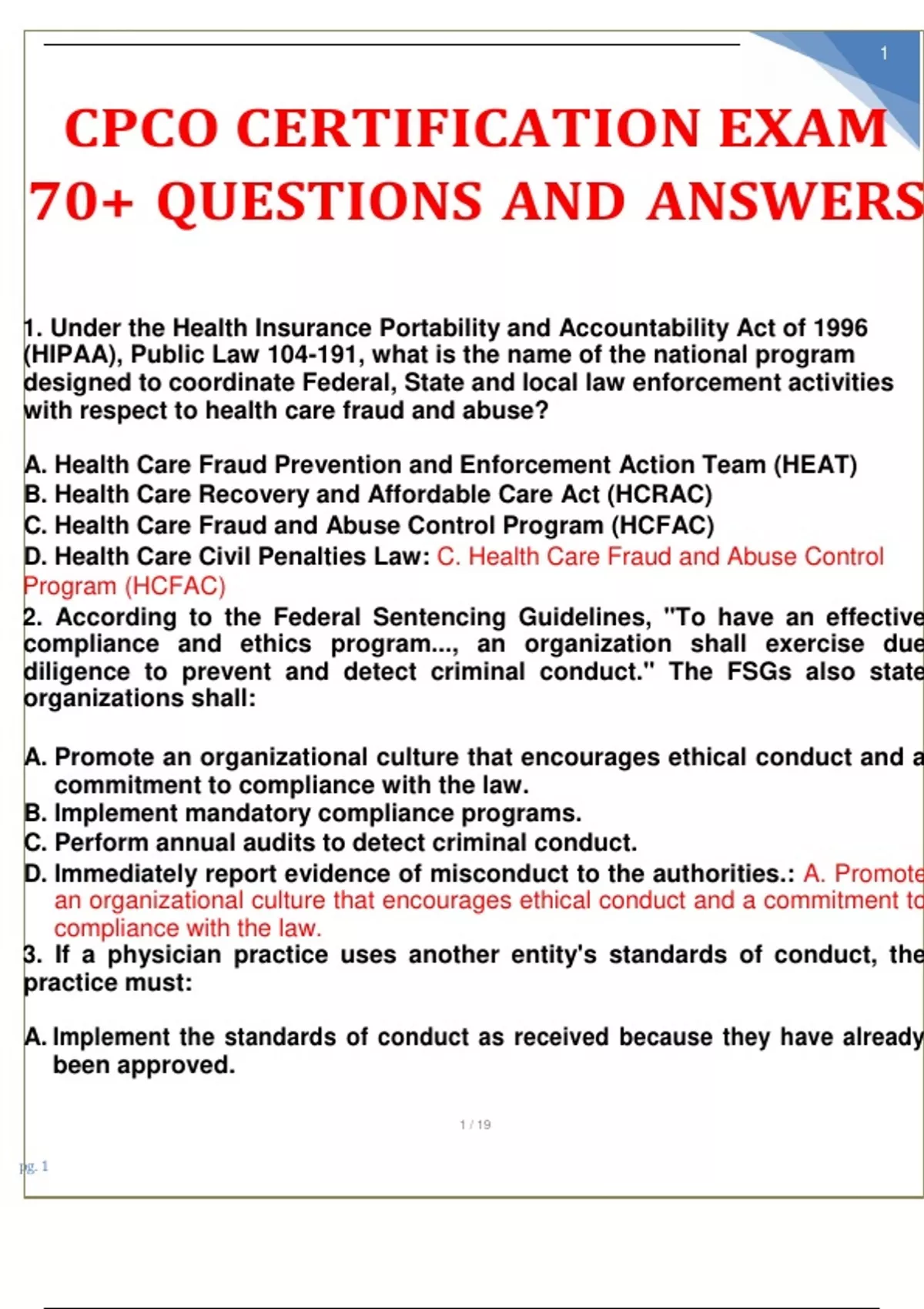 CPCO CERTIFICATION EXAM 70+ QUESTIONS AND ANSWERS/CPCO CERTIFICATION EXAM 70+ QUESTIONS AND ANSWERS/CPCO CERTIFICATION EXAM 70+ QUESTIONS AND ANSWERS/CPCO CERTIFICATION EXAM 70+ QUESTIONS AND ANSWERS