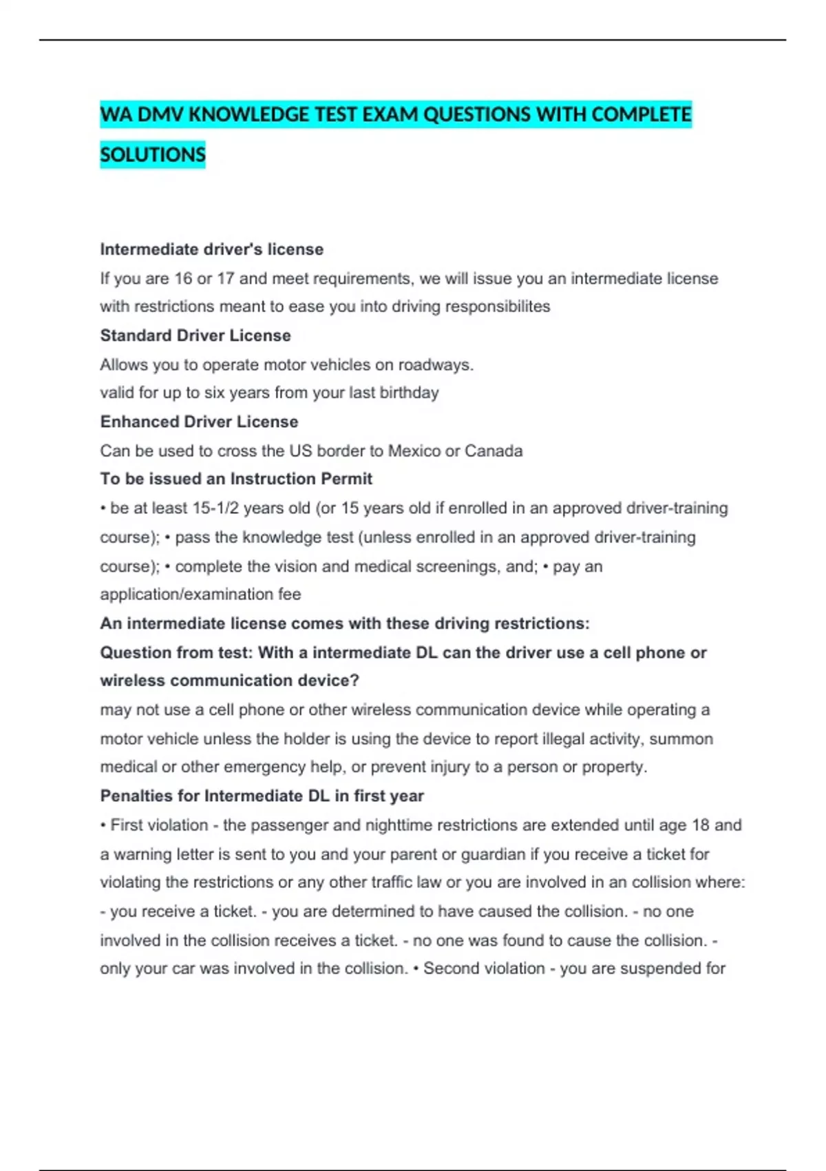course); • pass the knowledge test (unless enrolled in an approved driver-training