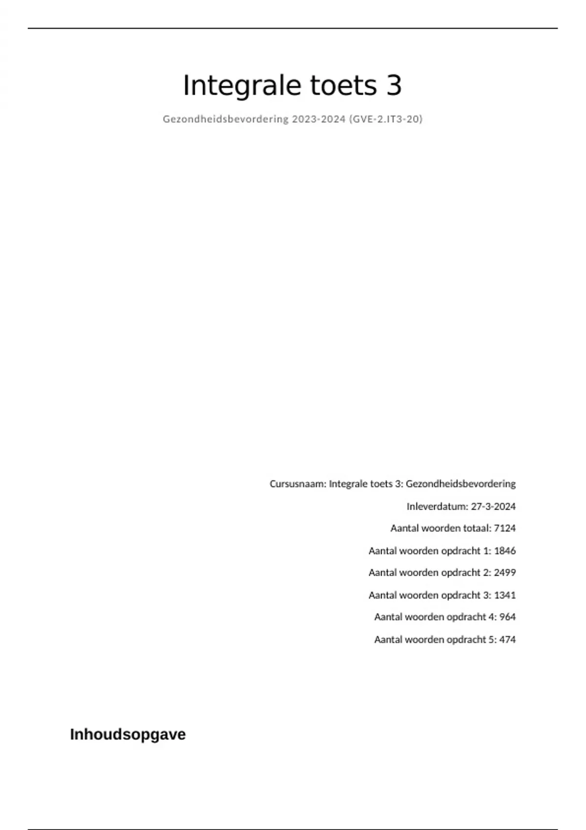 Cursusnaam: Integrale toets 3: Gezondheidsbevordering