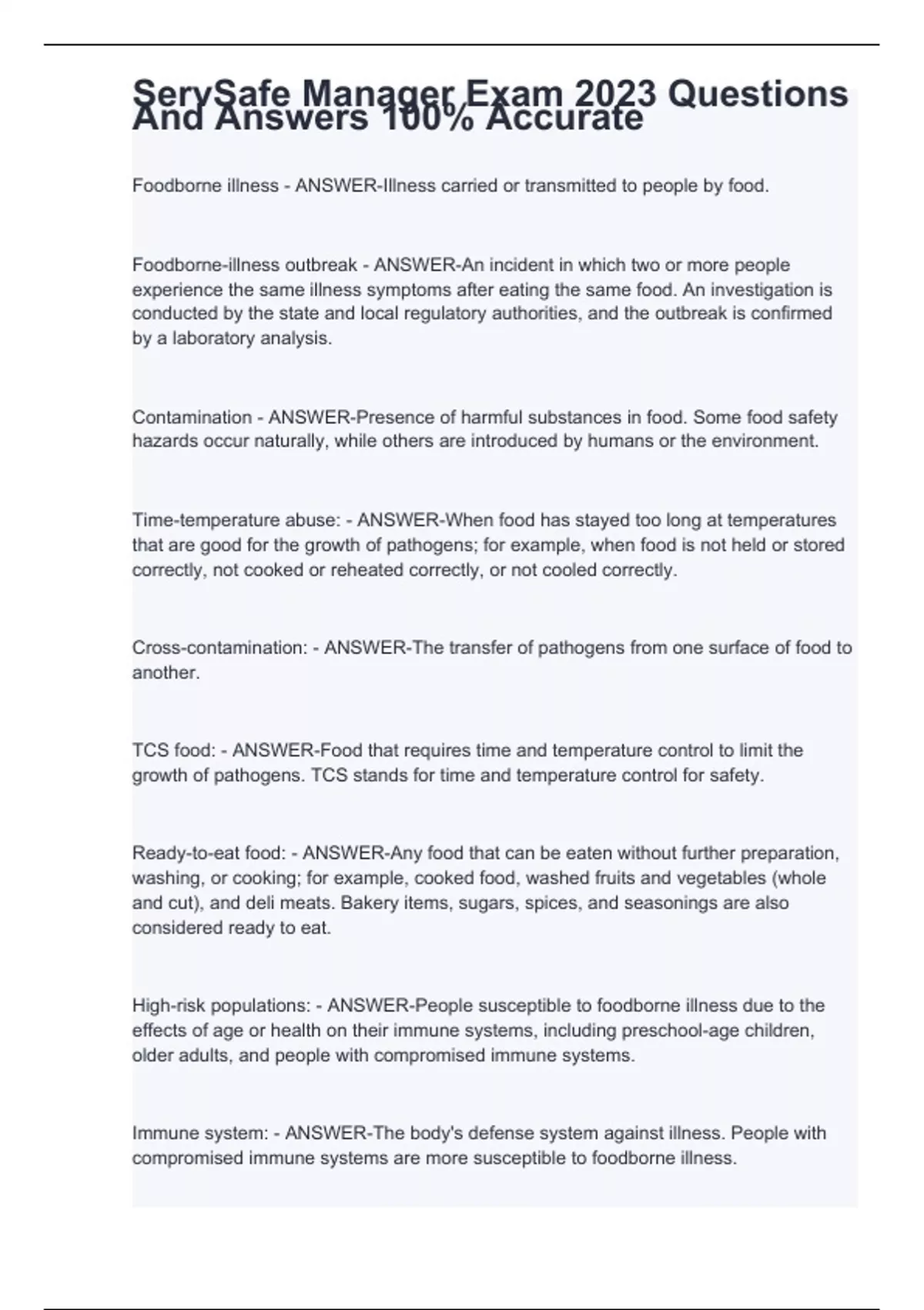 ServSafe Manager Exam 2023 Questions And Answers 100% Accurate