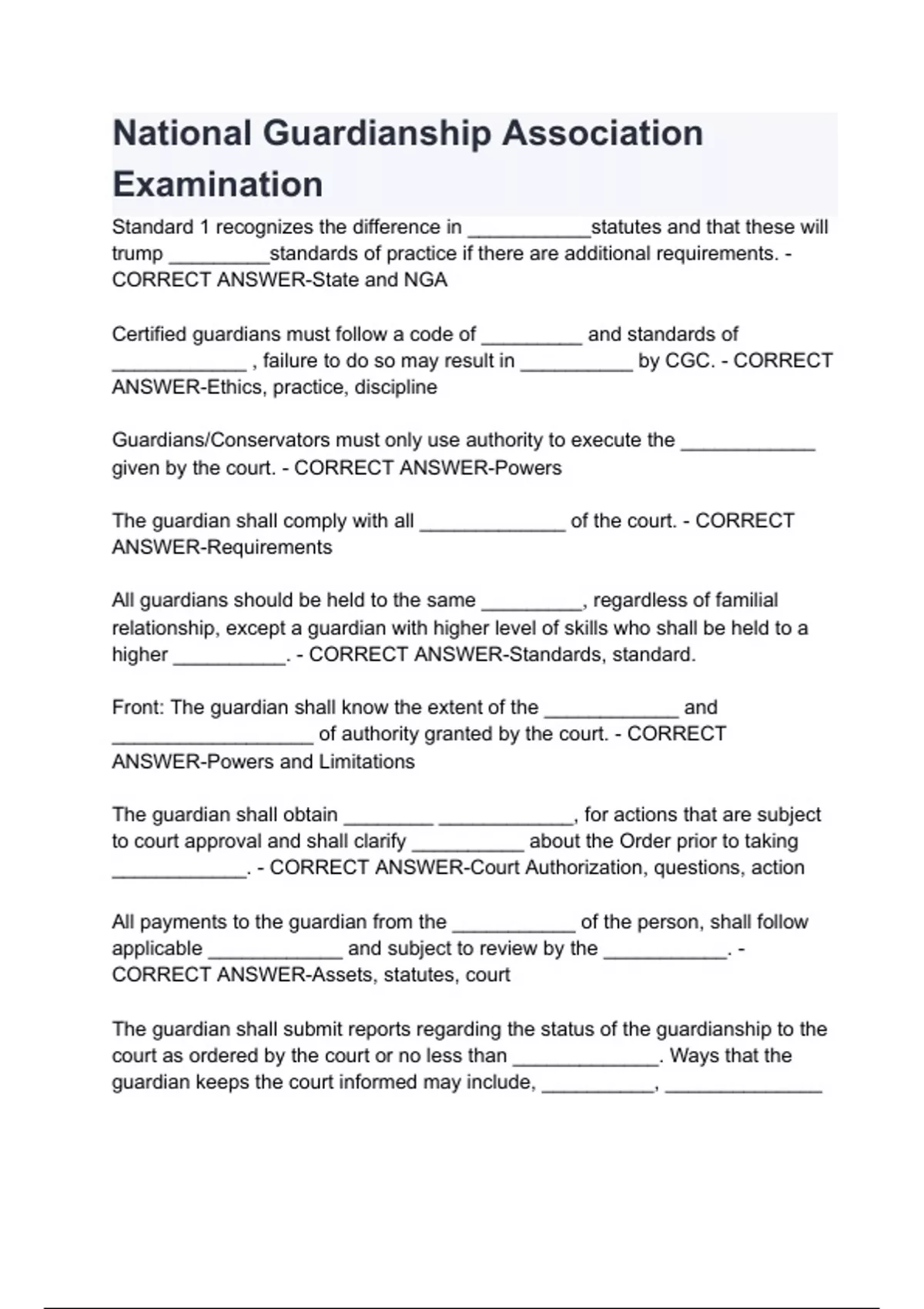National Guardianship Association Terminology, National Guardianship Association Examination bundle