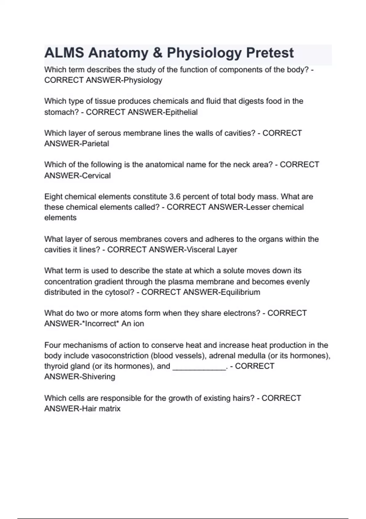 ALMS Anatomy & Physiology Pretest with complete solution / Latest updated .
