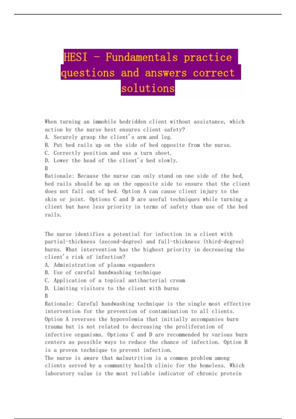 does not fall out of bed. Option A can cause client injury to the
