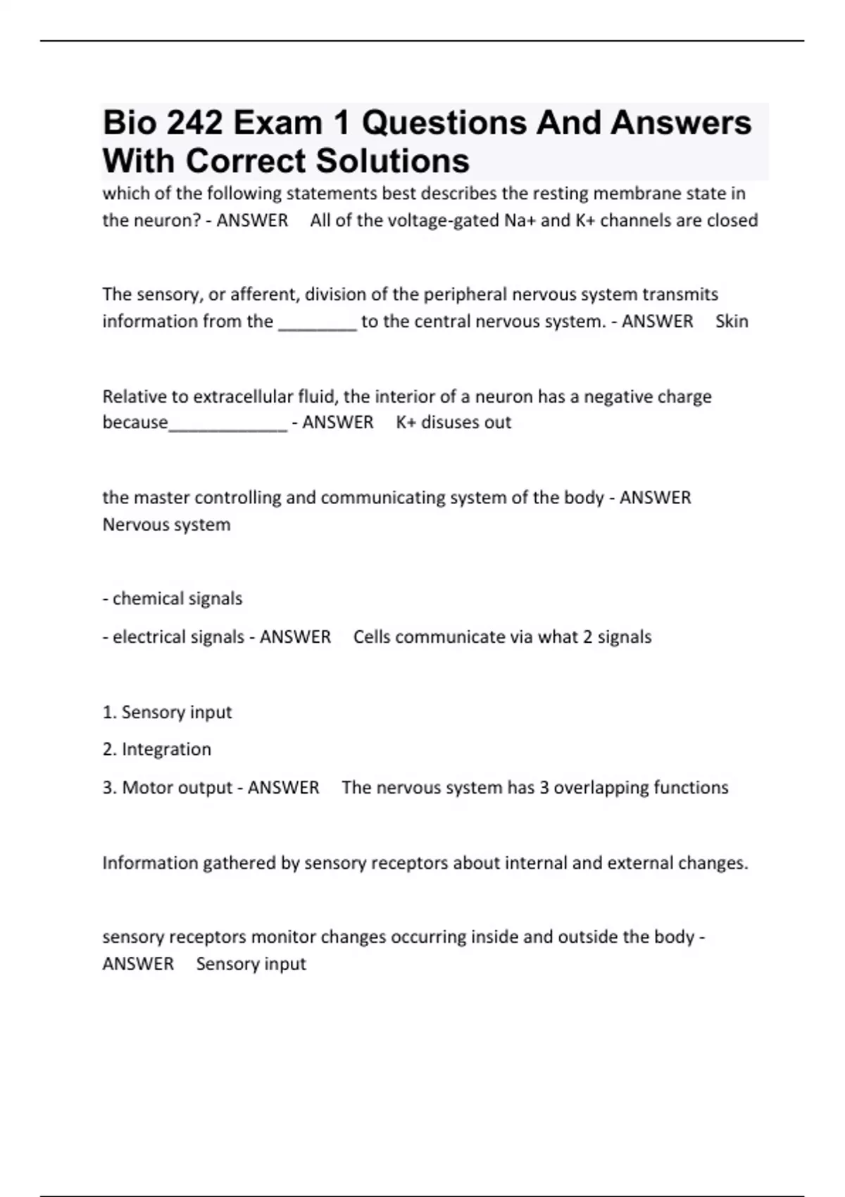 Bio 242 Exam 1 Questions And Answers With Correct Solutions
