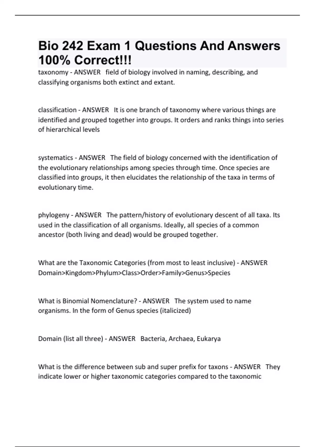 Bio 242 Exam 1 Questions And Answers 100 Verified