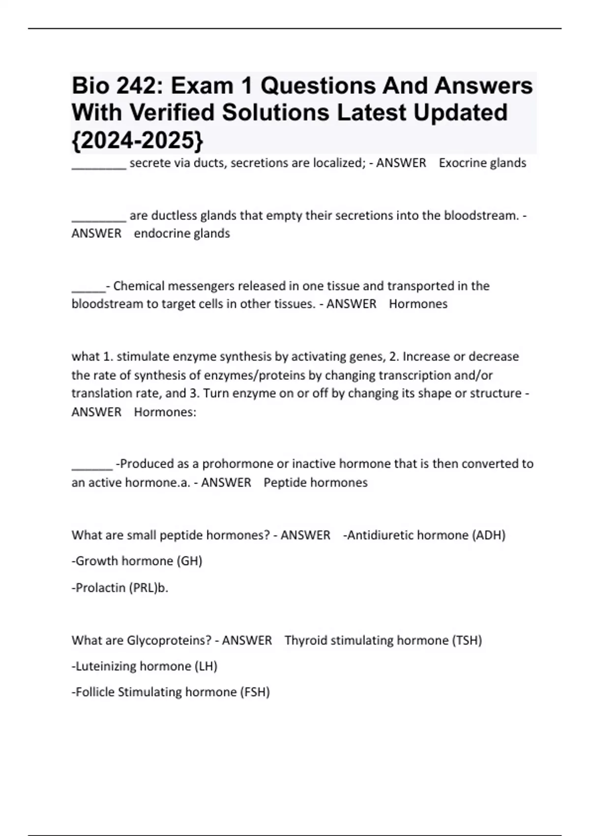 Bio 242 Exam Questions And Answers With Verified Solutions (GRADED A+).