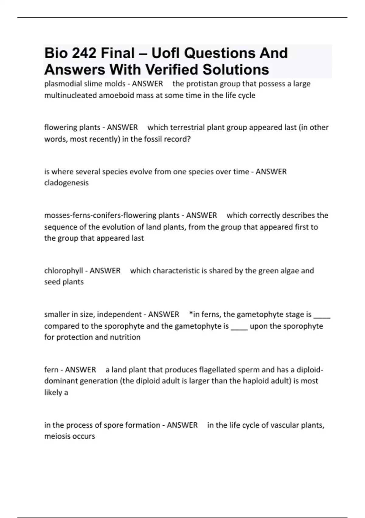 BIOS 242 PACKAGE DEAL EXAM QUESTIONS AND ANSWERS WITH VERIFIED SOLUTIONS (GRADED A+) | 2024