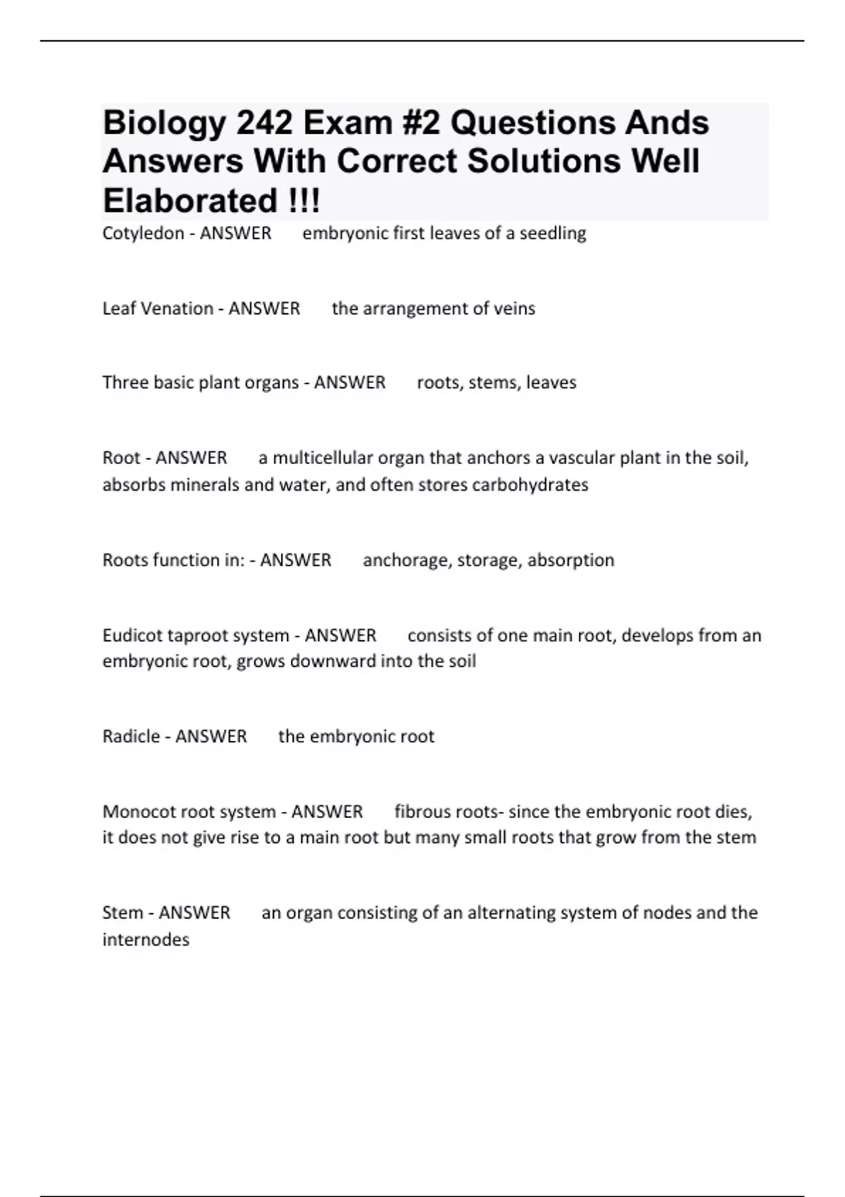 biology 242 exam questions and answers with verifi