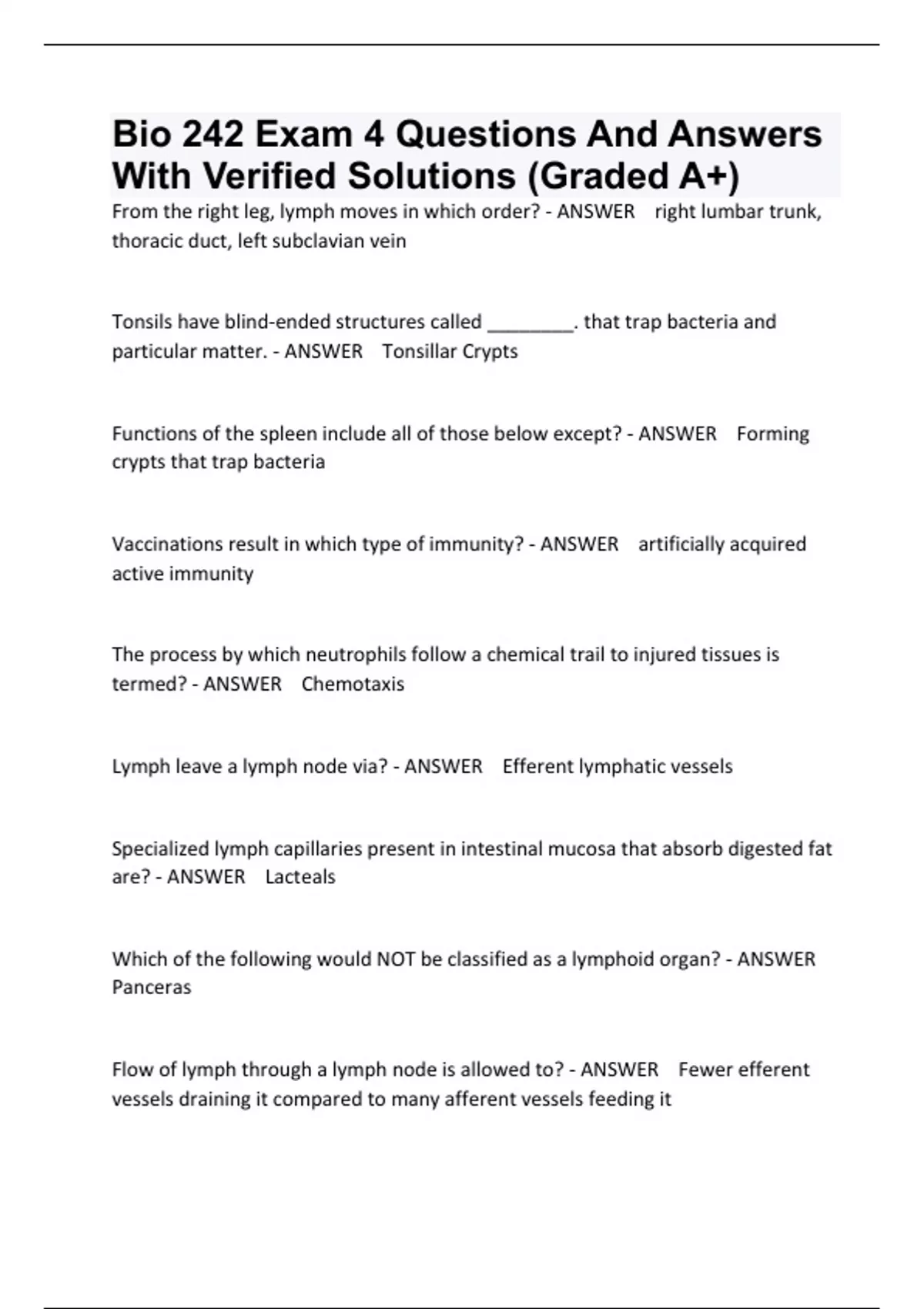 BIOS 242 PACKAGE DEAL EXAM QUESTIONS AND ANSWERS WITH VERIFIED SOLUTIONS (GRADED A+) | 2024