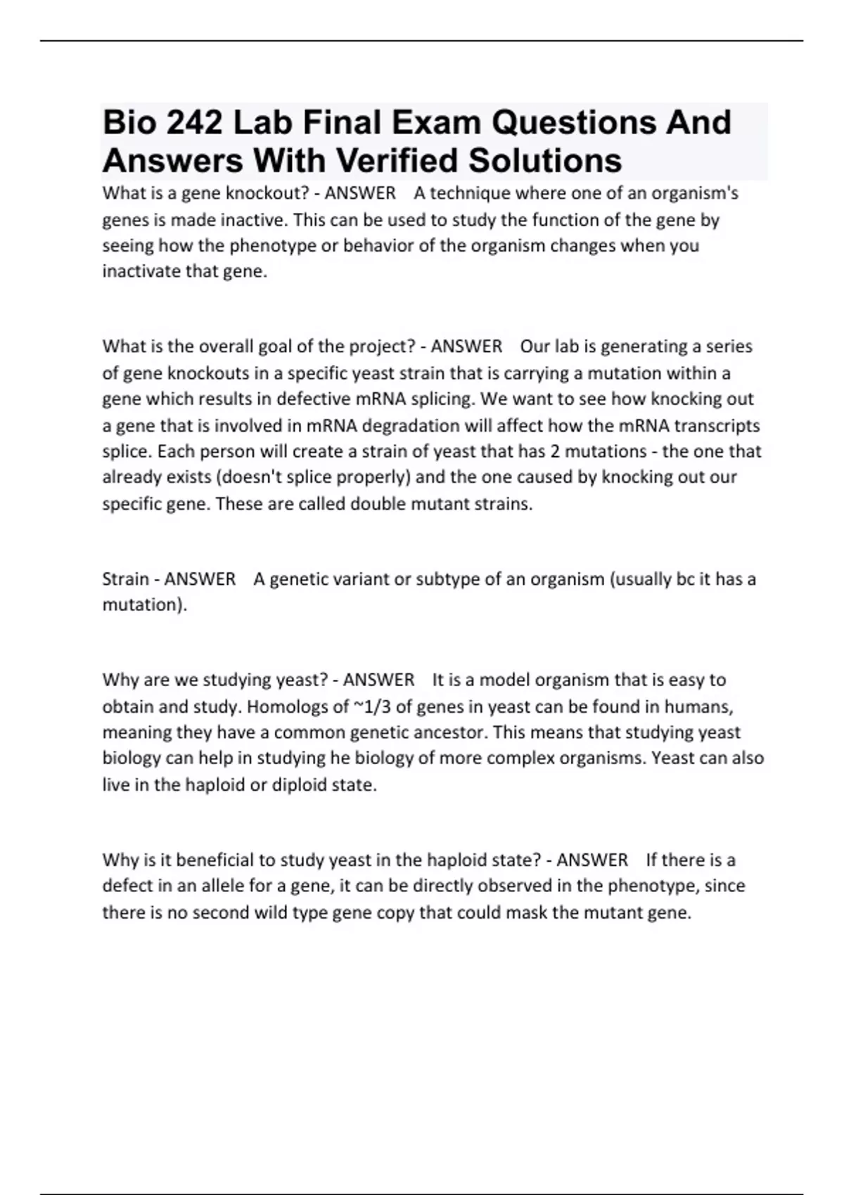 Bio 242 Lab Final Exam Questions And Answers With Verified Solutions