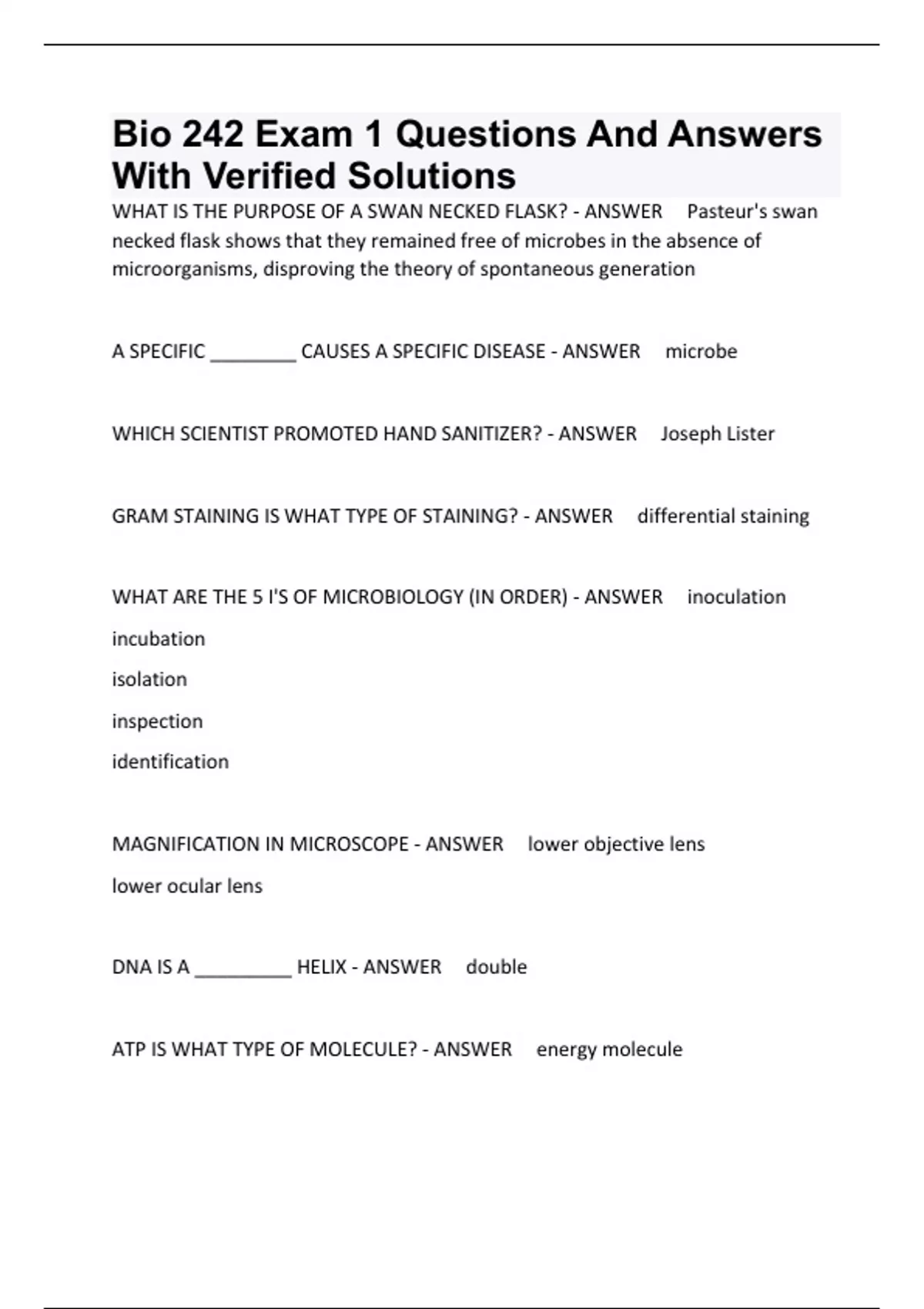 Bio 242 Exam 1 Questions And Answers With Verified Solutions