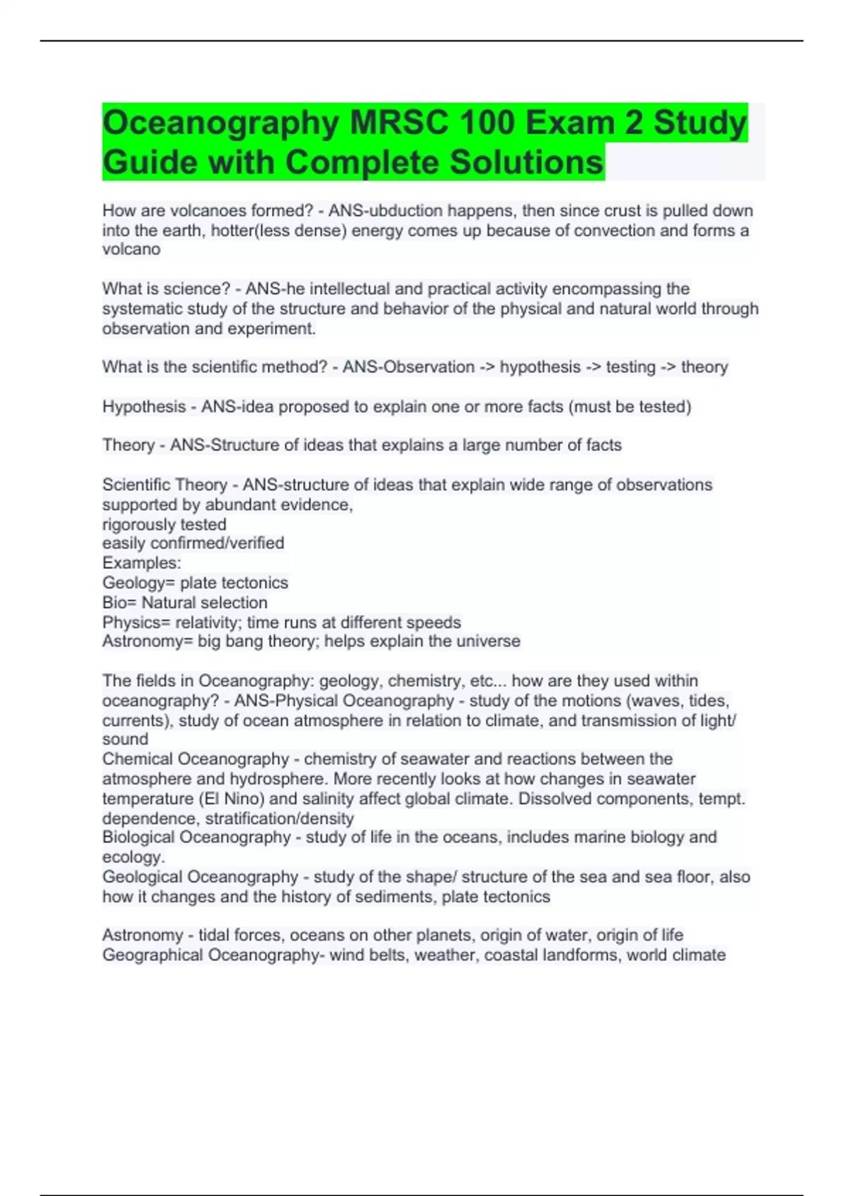 Oceanography MRSC 100 Exam 2 Study Guide with Complete Solutions