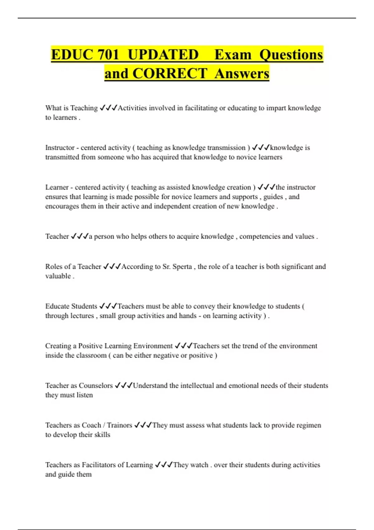 EDUC 701 UPDATED Exam Questions and CORRECT Answers