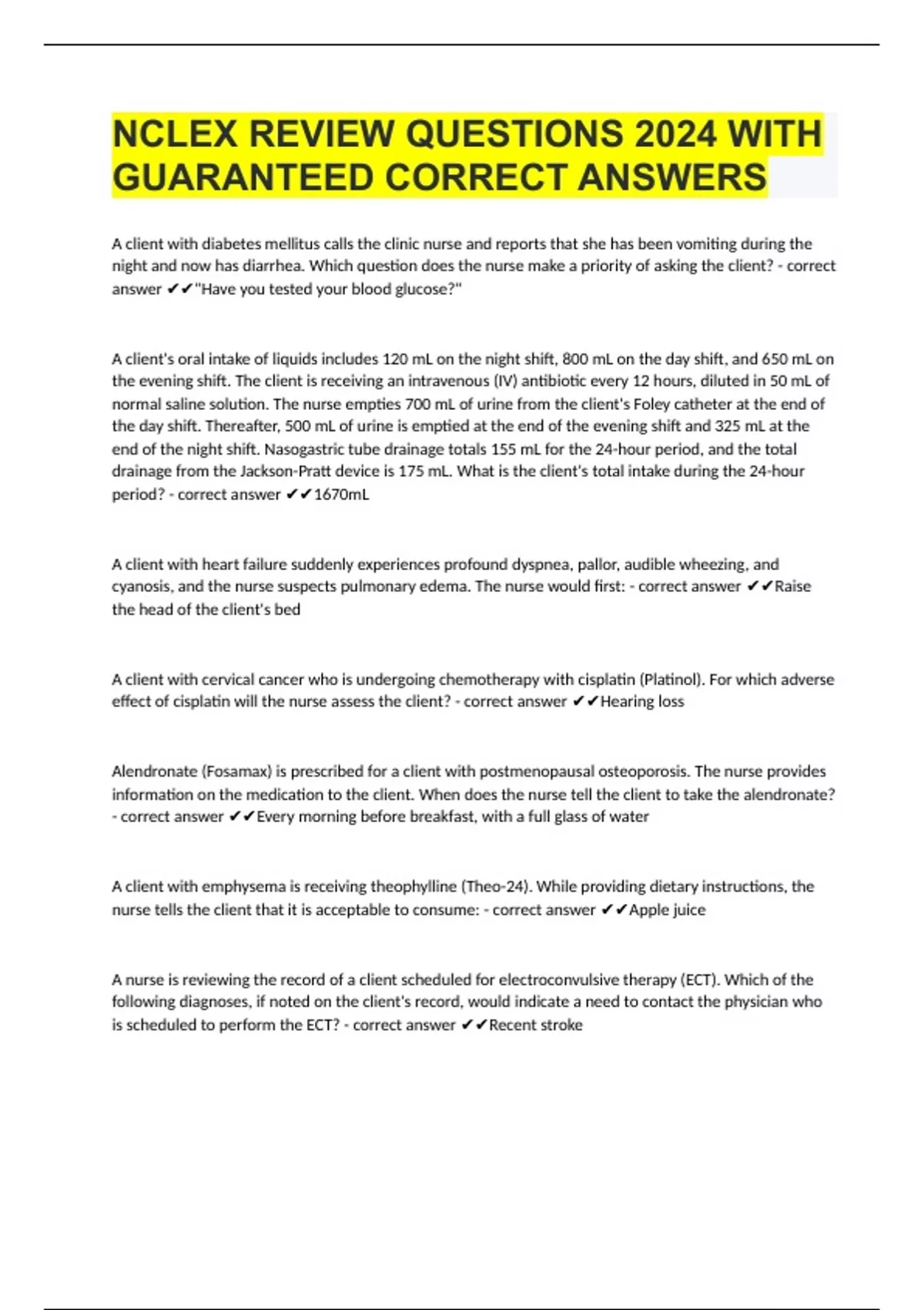 NCLEX REVIEW QUESTIONS 2024 WITH GUARANTEED CORRECT ANSWERS